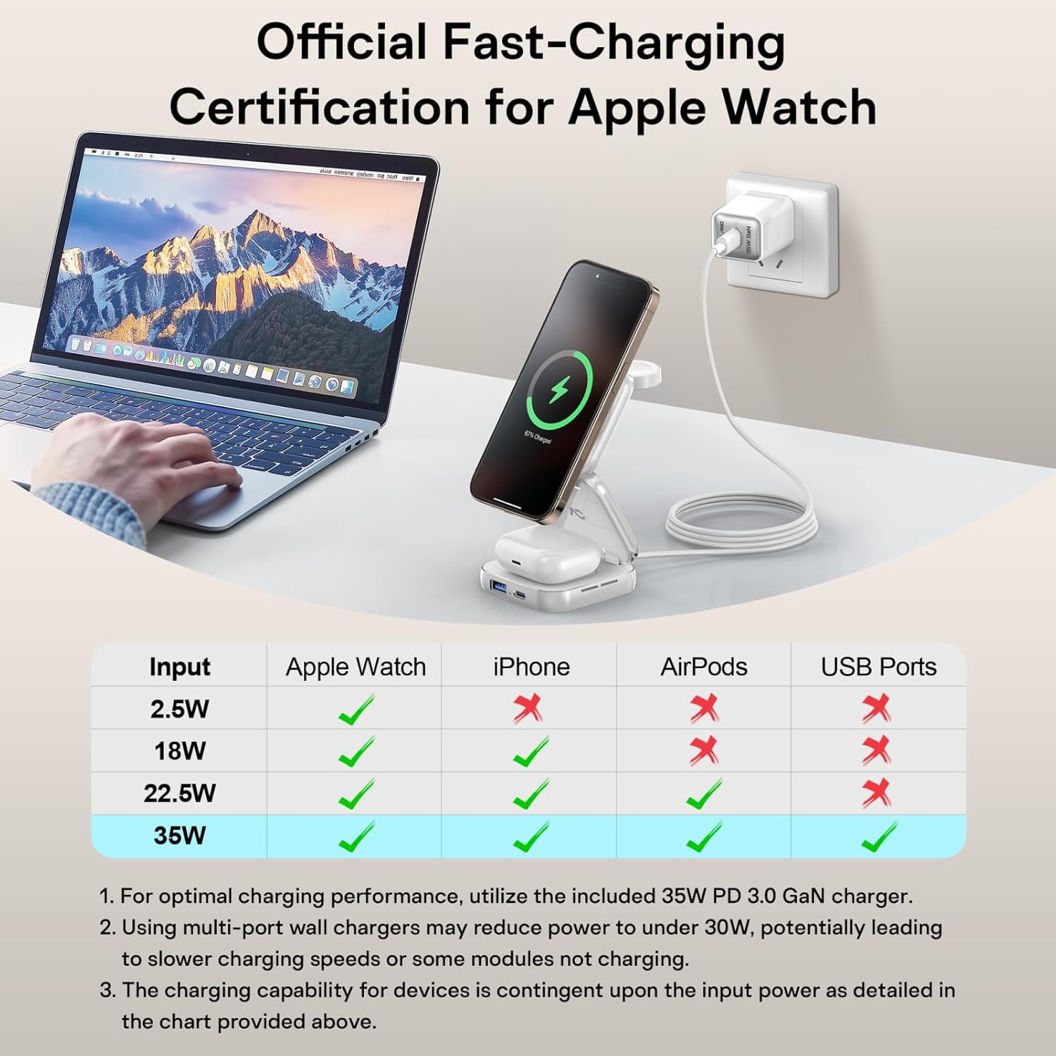 Made for MagSafe: Equipped with a 35W GaN power charger and N52-grade magnets, this charger provides a secure hold and ensures your device never slips. Enjoy up to 15W of high-speed charging for iPhone 17/Air16/15/14/13/12 series with seamless magnetic alignment through Apple MagSafe technology.