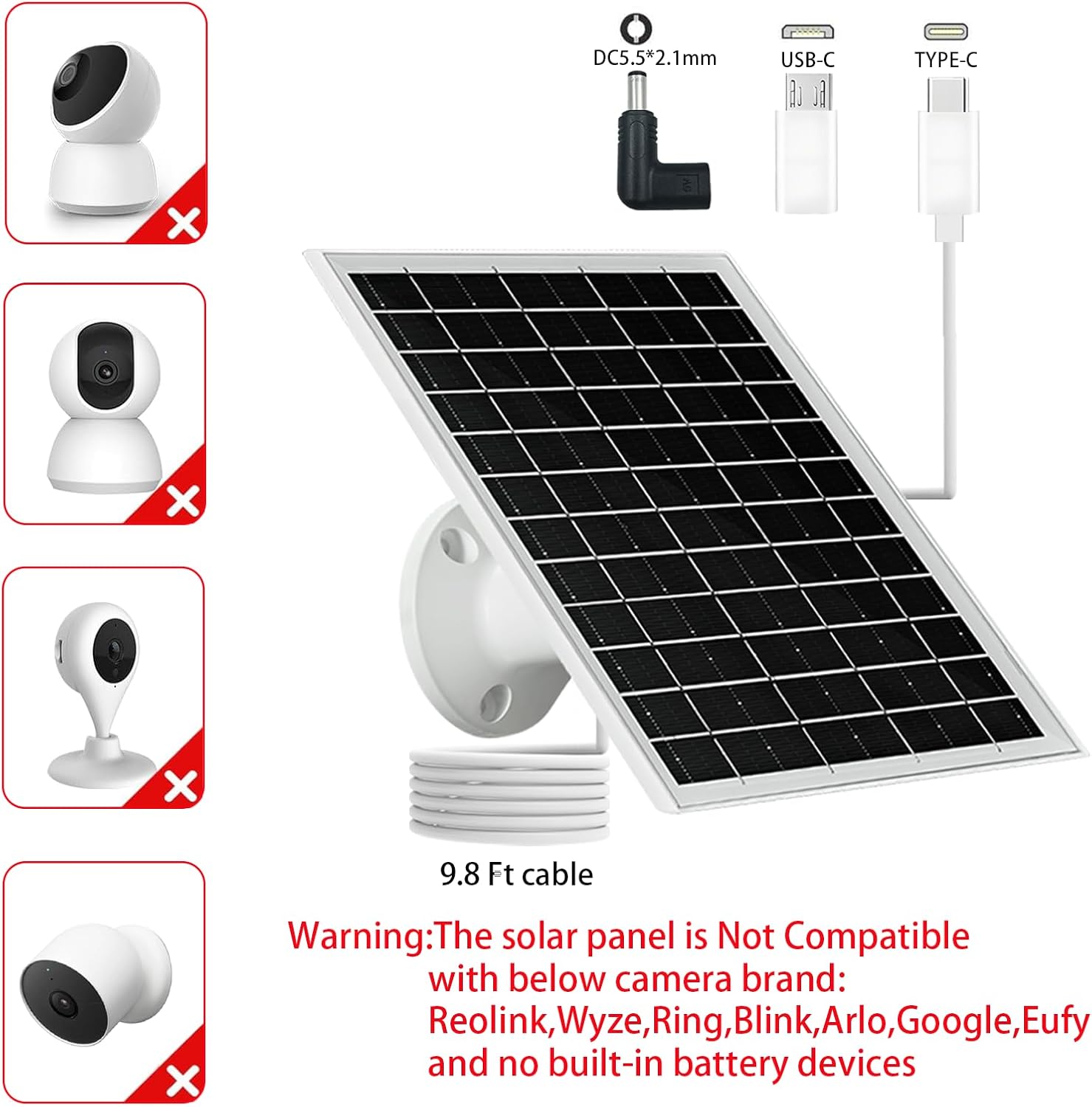 【WARM TIPS】This solar panels have no battery inside and they only work for built-in battery devices,please make sure your device is in a rechargeable state.The solar panel is Not Compatible with below camera brand:Reolink,Wyze,Ring,Blink,Arlo,Google,Eufy