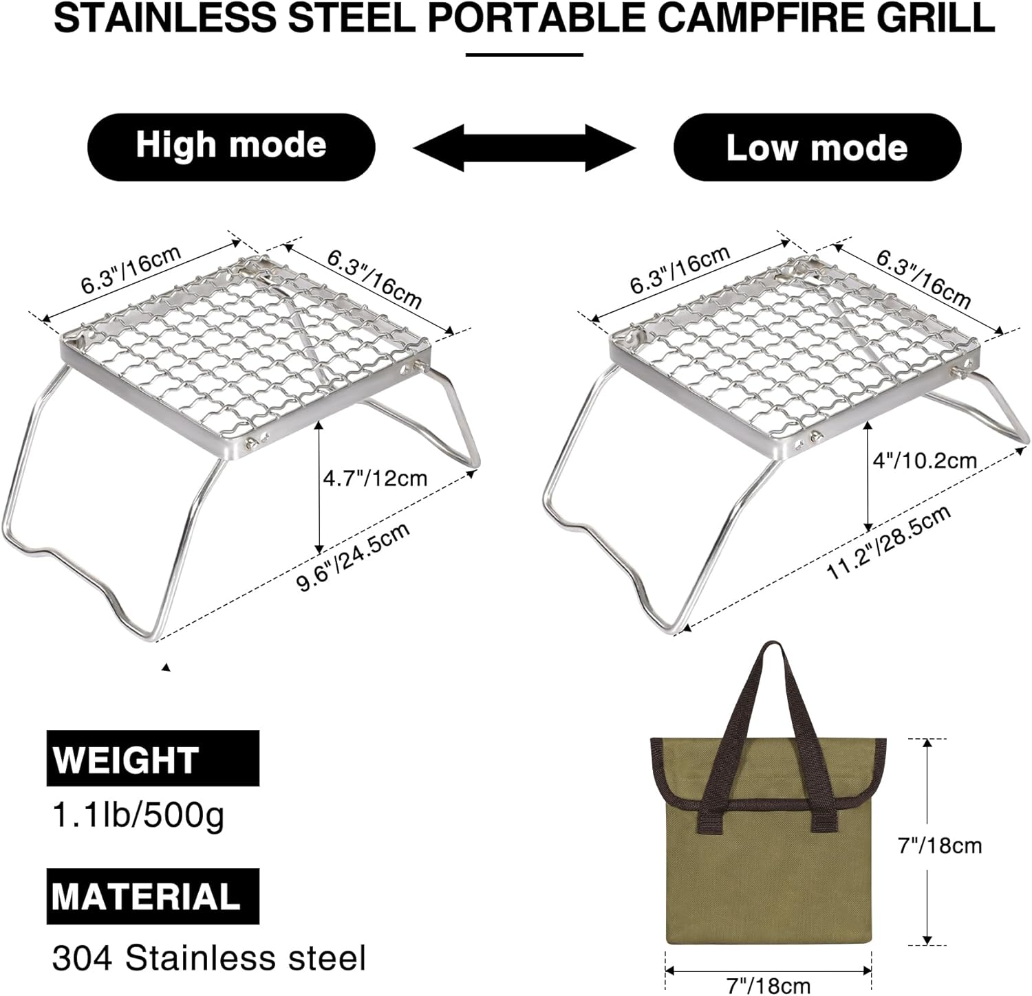 Premium Build Quality: Crafted from 304 food-grade stainless steel, this Folding Campfire Grill is built to last. It resists high temperatures and corrosion, and its sturdy welds ensure long-term durability, promising countless cooking sessions.