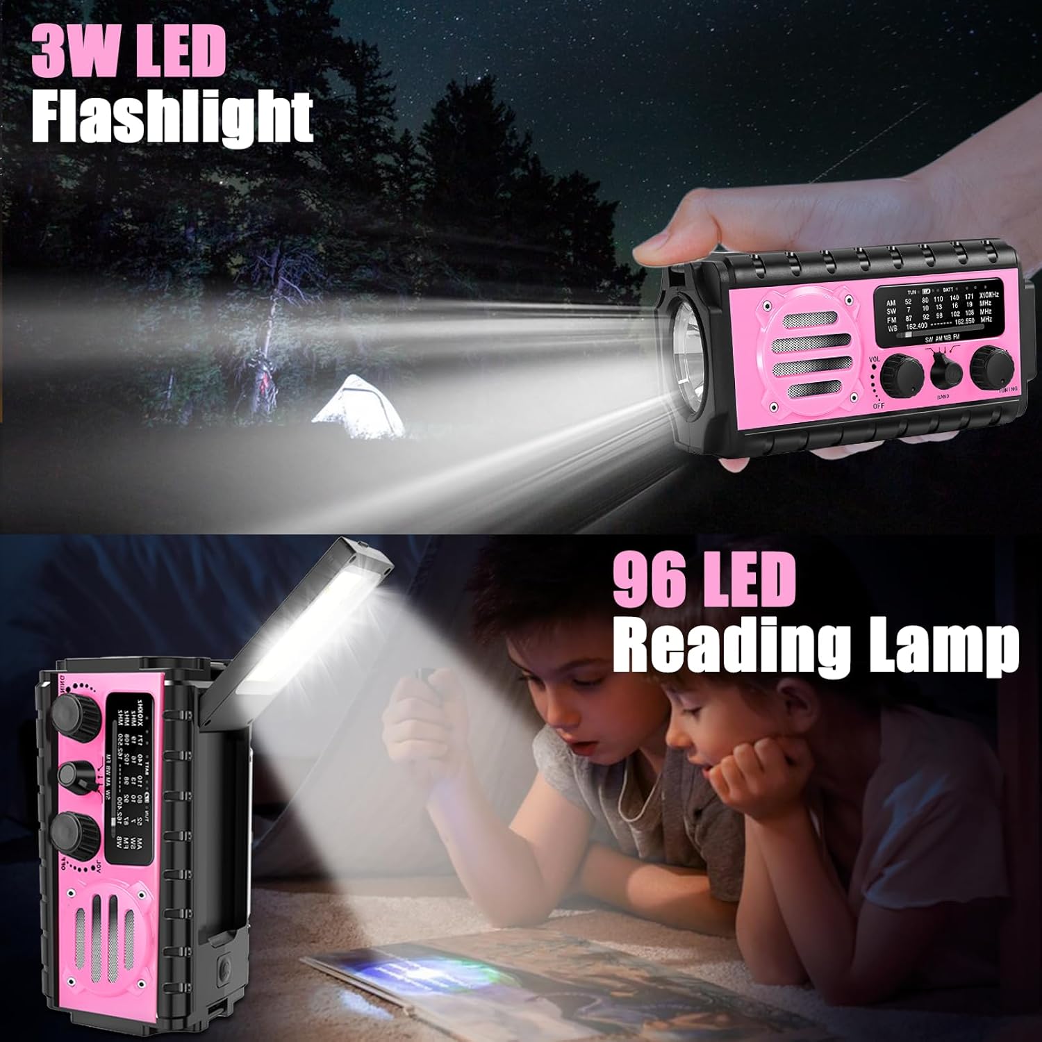 [MULTI-USE & DURABLE]- The upgraded ππ«ππ§π€ π«πππ’π¨π¬ is enough to charge your cell phone or USB devices for a brief call or a text message during an emergency. This π°ππππ‘ππ« π«πππ’π¨ with 3W integrated flashlights and 3.5W reading lamp are handy during emergency power cuts to see any signal in the dark. can be a lifesaver during dangerous disasters like tornadoes and hurricanes.