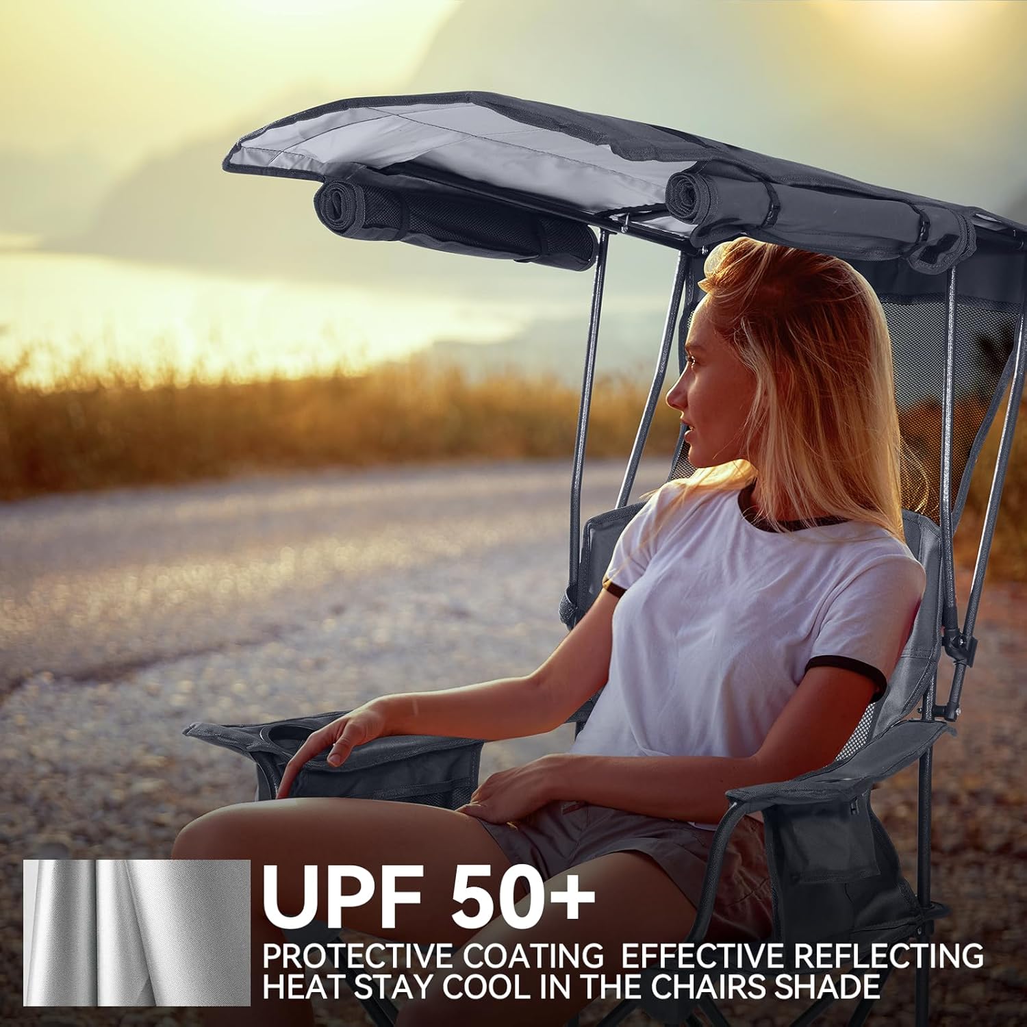Optional Side Sunshade or Sunbathing: The side sunshades of the camping chair with shade can be rolled up and secured under the canopy when not in use, providing protection even during the strongest sunlight. It is the perfect companion for family camping trips to watch children play.