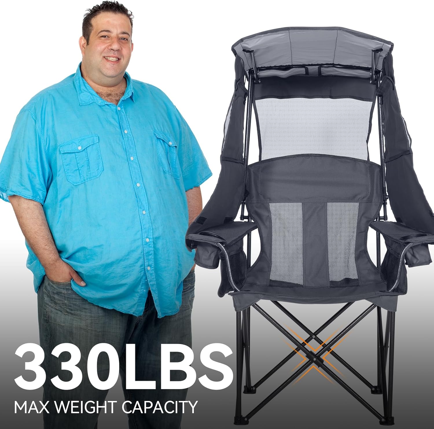 Durable & Versatile: This camping chair constructed with an ultra-sturdy steel frame and additional central support for enhanced stability, paired with durable 600D Oxford fabric, this foldable outdoor chair can support up to 330 pounds, offering a long-lasting lifespan, making it an excellent choice for canopy camping.