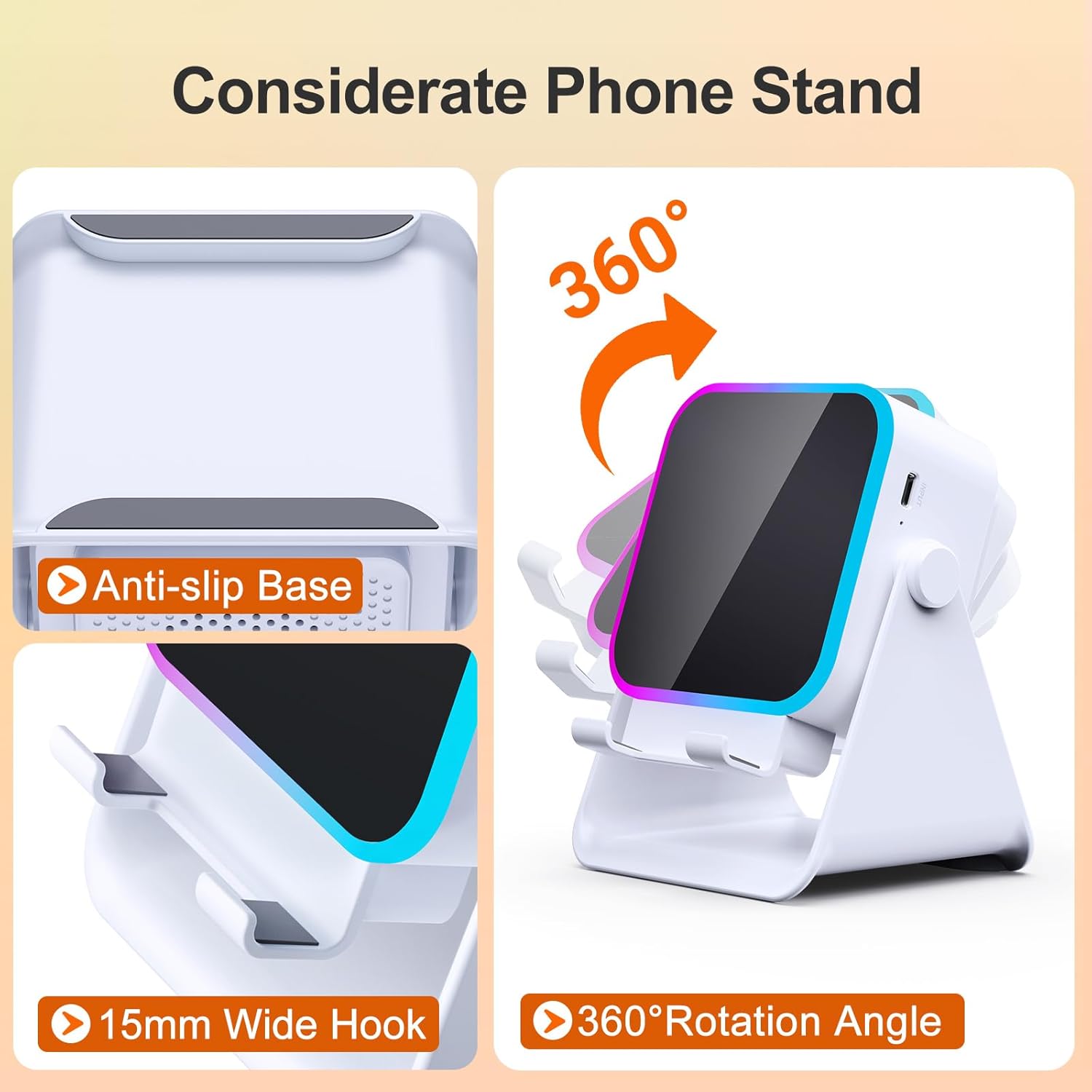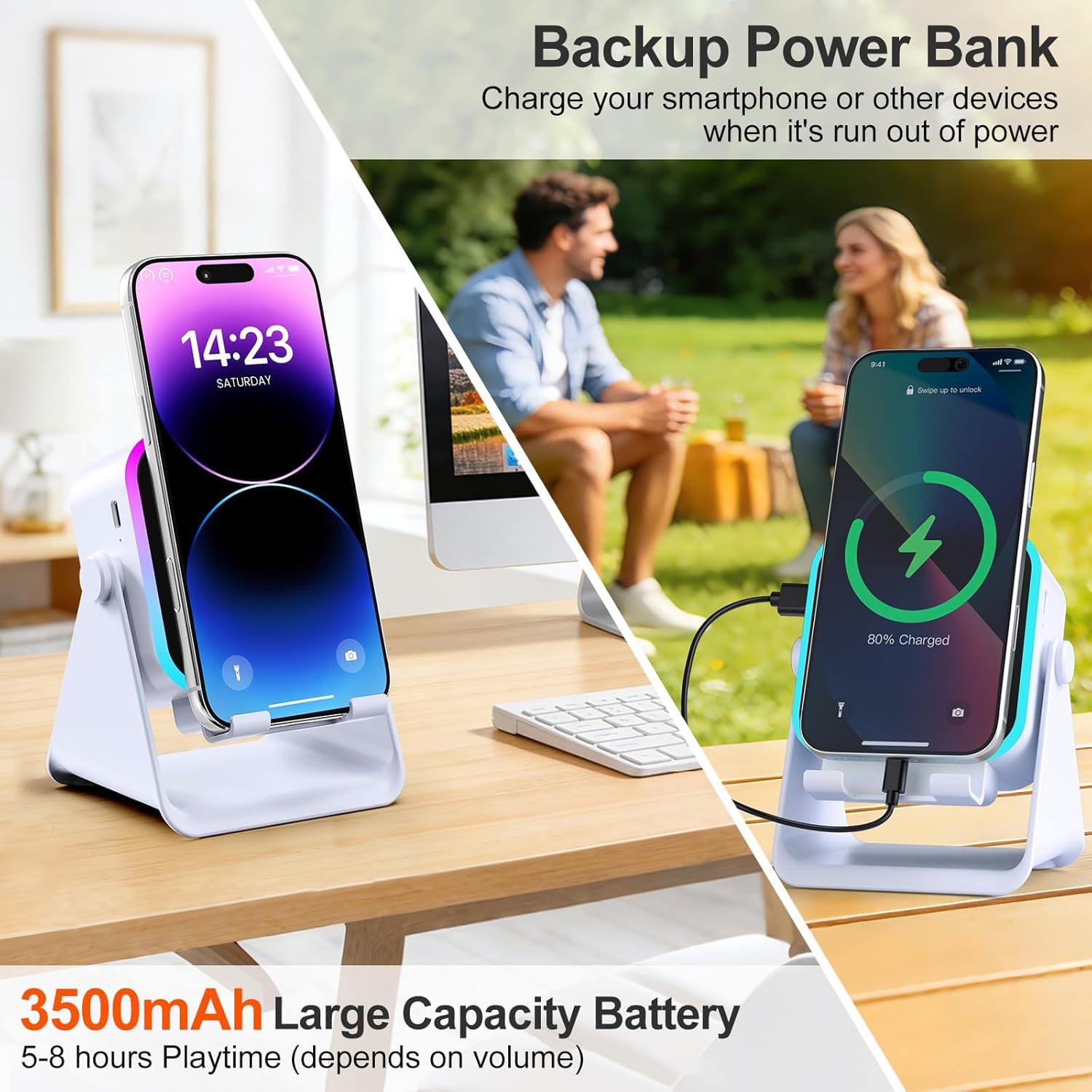 Multifunctional Bluetooth Speaker: Combines a wireless induction speaker, Bluetooth speaker, adjustable phone stand, power bank and RGB ambient night light into one sleek gadget, offering ultimate convenience and style for work, leisure, and entertainment