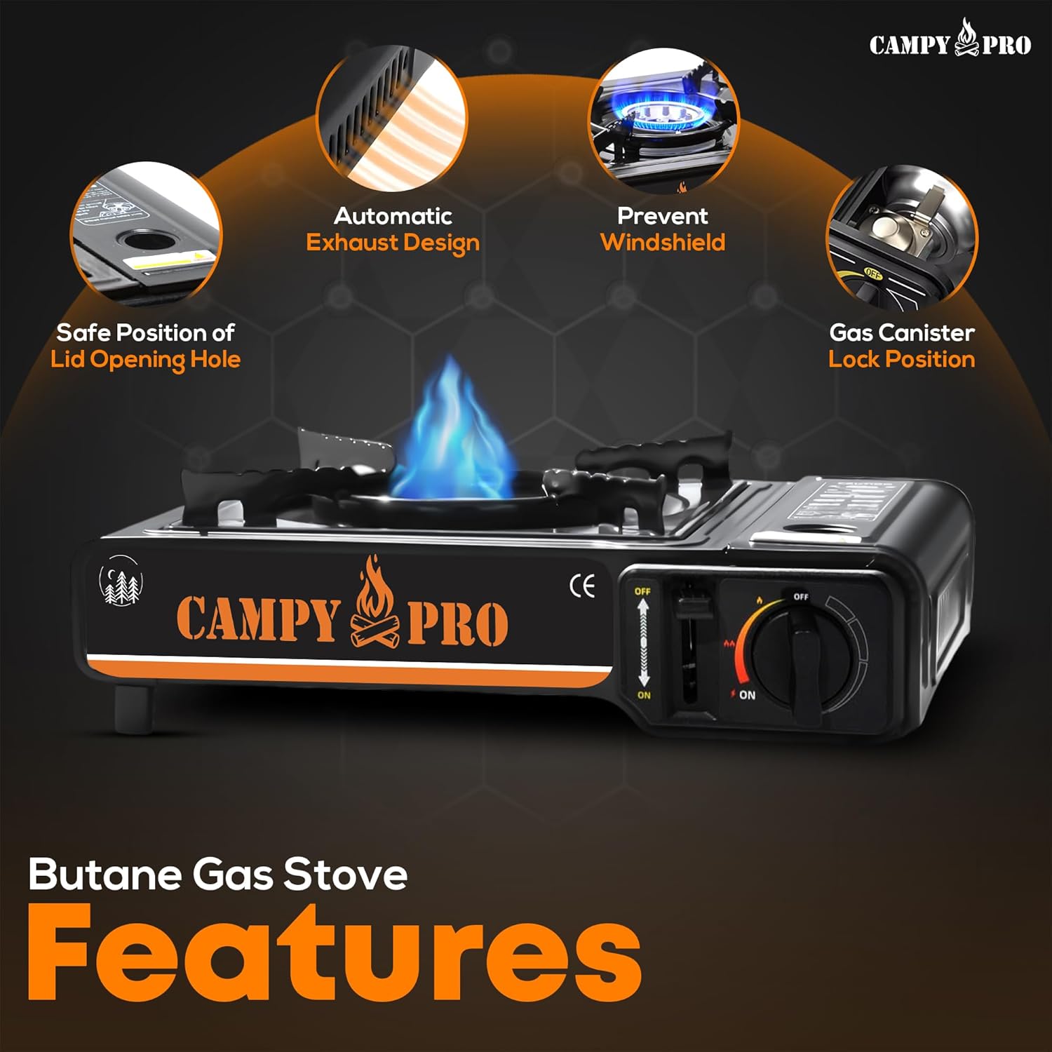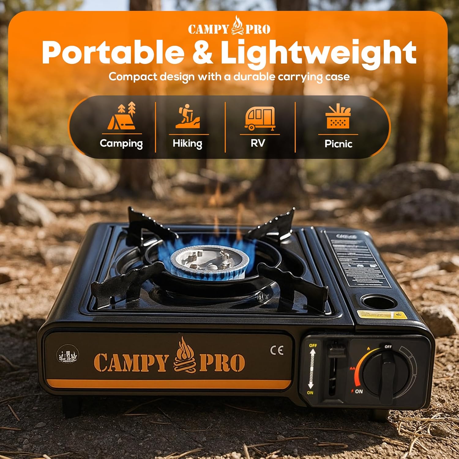 Compact and lightweight, this butane stove is easy to carry and perfect for outdoor cooking on camping trips, hikes, or road adventures.