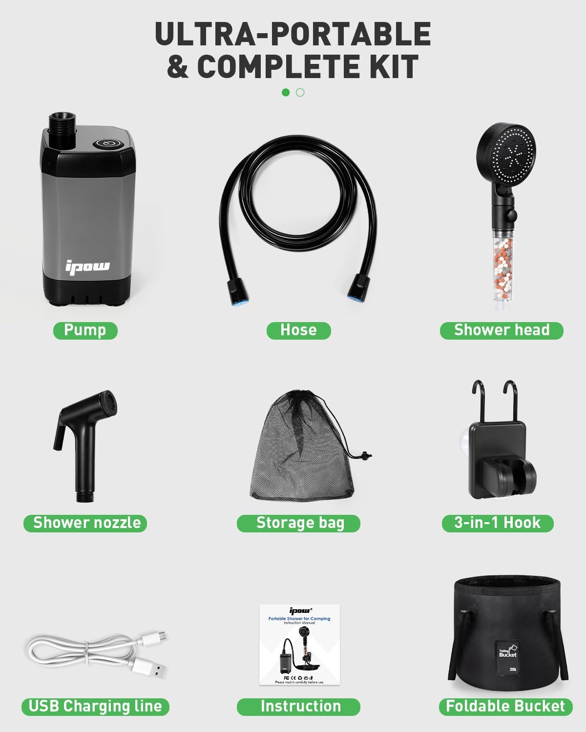 【All-in-One Kit with 20L Bucket – No Leaks, Ready in Seconds】Forget frustrating leaks and missing buckets! Our complete kit includes a 20L collapsible bucket—everything you need to start showering instantly. Engineered with superior seals and a reliable, leak-proof pump system, it delivers a consistent flow without drips or wasted water. Perfect for camping, pet washing, car cleaning, and emergency prep.