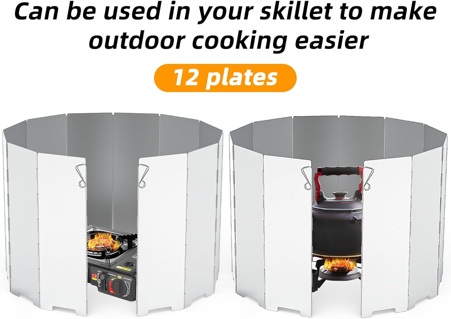 Wide Application for Outdoor Cooking:This versatile stove windshield works with all types of camp stoves—from backpack cooking wind screen setups(10Plates)to large outdoor stoves(16plates). It’s a must-have for camping, BBQ, picnic, and other outdoor activities, keeping your stove stable and cooking efficient.