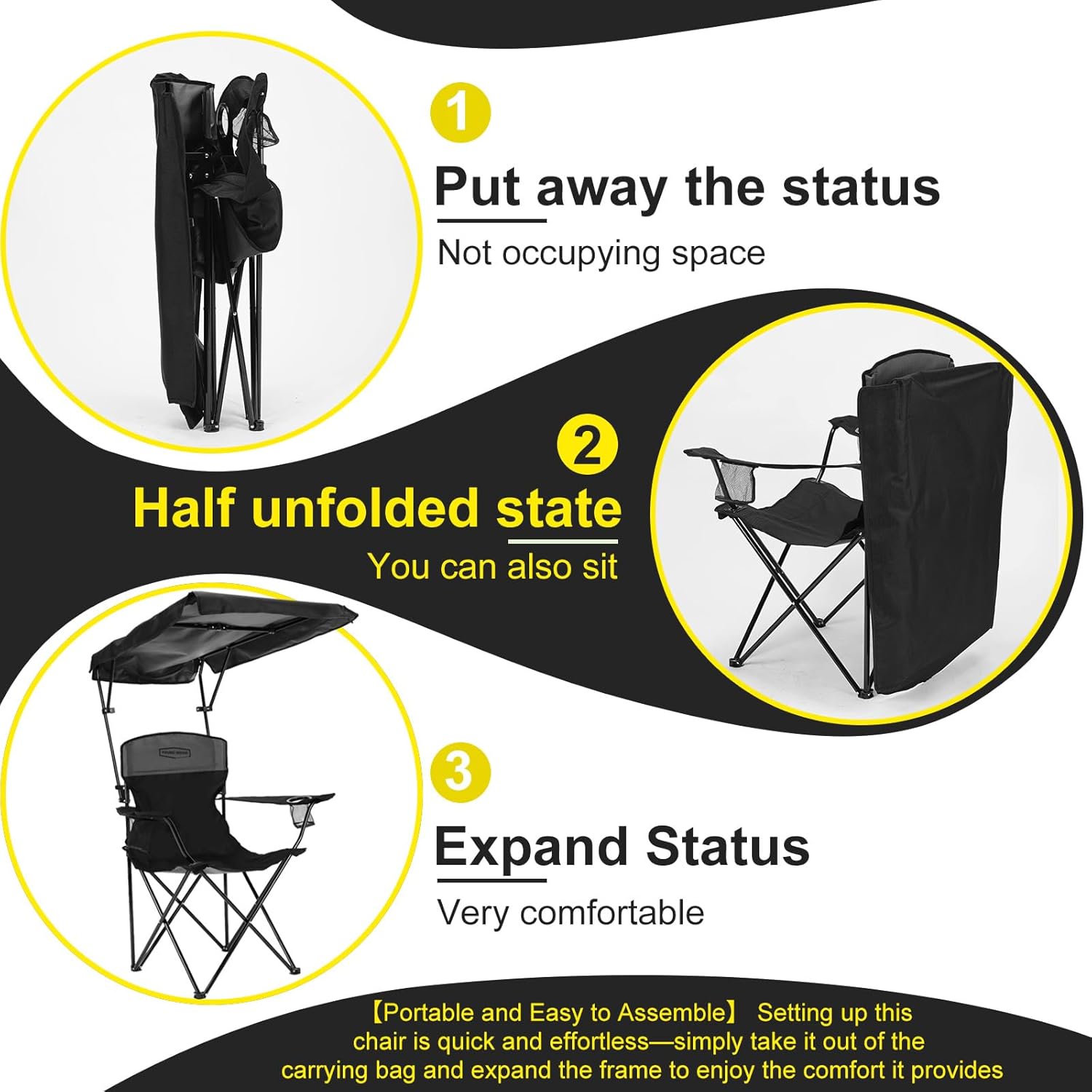 🥾 YOUNG WOOD Camping Chair with Canopy, Beach Chair with Shade,Portable,Lightweight Oversized for All, Easy to Open and Close Without Installation, Side Pocket Design for All Outdoor Activities,Black — Review, Key Features & Current Price
