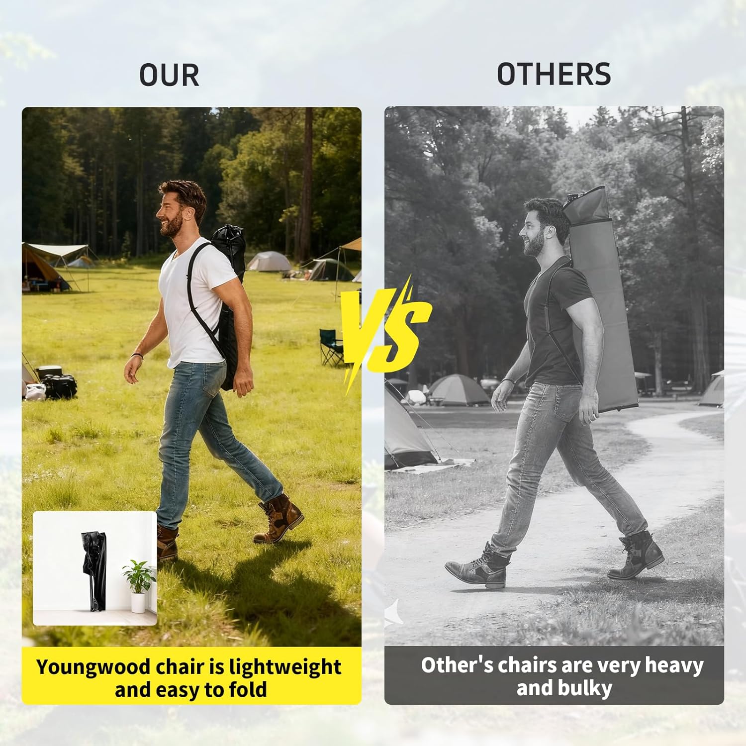 【Portable and Easy to Assemble】No worries about assembly and carrying. Setting up this chair is quick and effortless—simply take it out of the carrying bag and expand the frame to enjoy the comfort it provides. When folded, it measures only 39×6.2×6.2in and weighs a mere 11lbs, making it easy to embark on a pleasant journey.