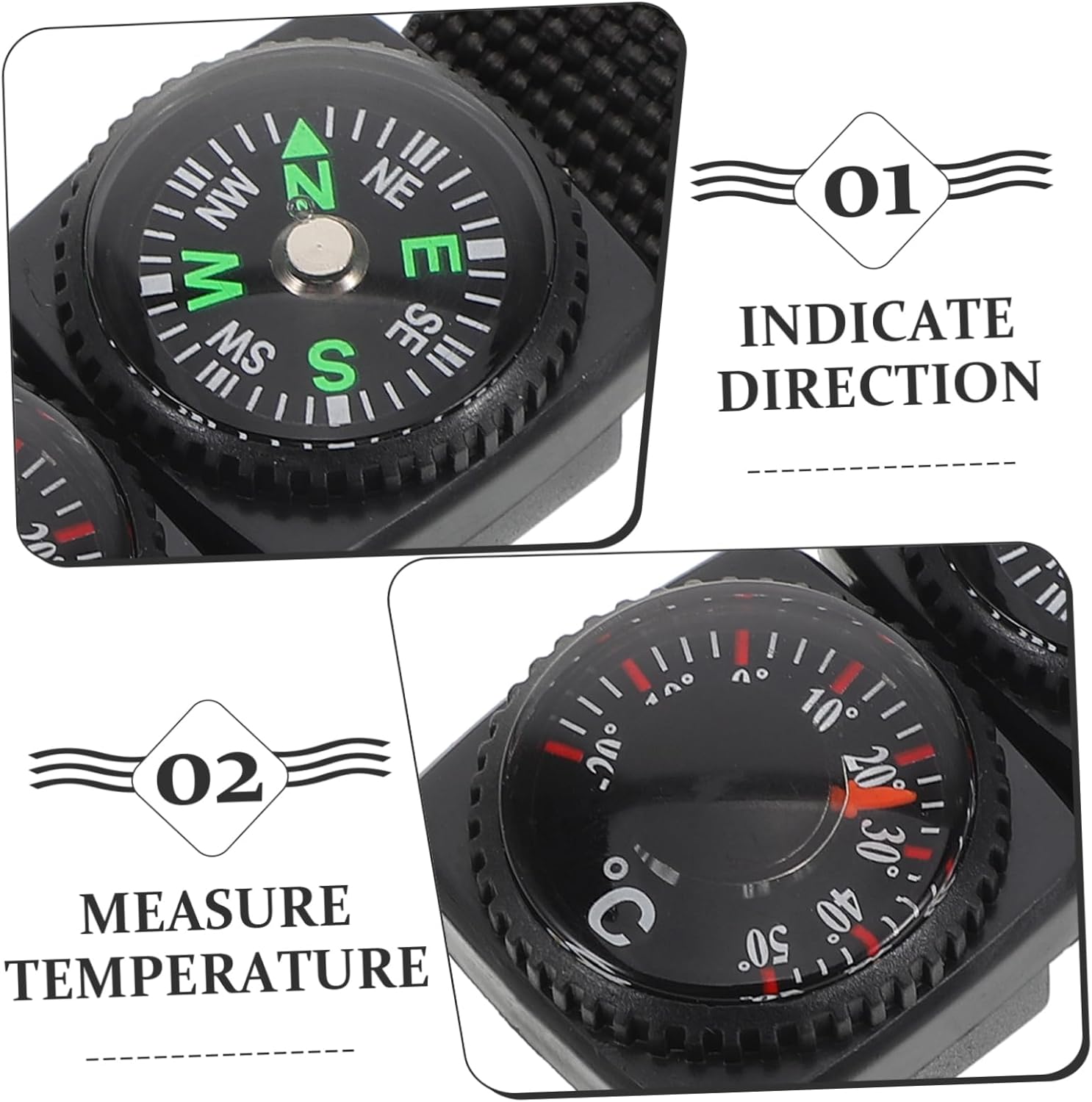 Watch band compass:equipped with a reliable thermometer, this tool provides accurate temperature readings, helping you stay informed about the weather conditions,metal compass