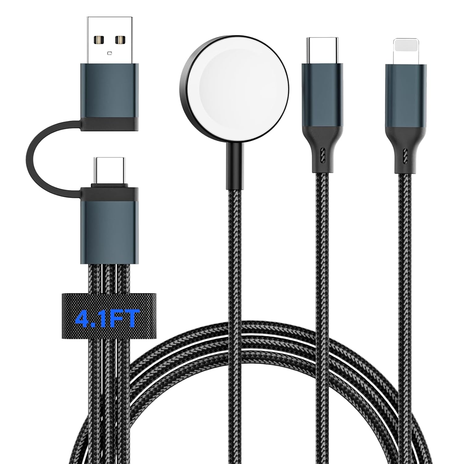 【Wide Compatibility Across Devices】Designed for ultimate versatility, this cable is fully compatible with all Apple Watch models including Ultra 3/Ultra 2/Ultra/SE 3/SE 2/SE/Series 11-2. It also supports charging for iPhone 17/16/15/14/13/12/11 series, iPhone 17 Pro Max/16 Pro Max/15 Pro Max, Samsung and other Android phones, as well as for iPad, iPad Air, iPad Pro, iPad mini, AirPods, AirPods Pro, and AirPods Max. A single cable meets the needs of nearly every modern device.
