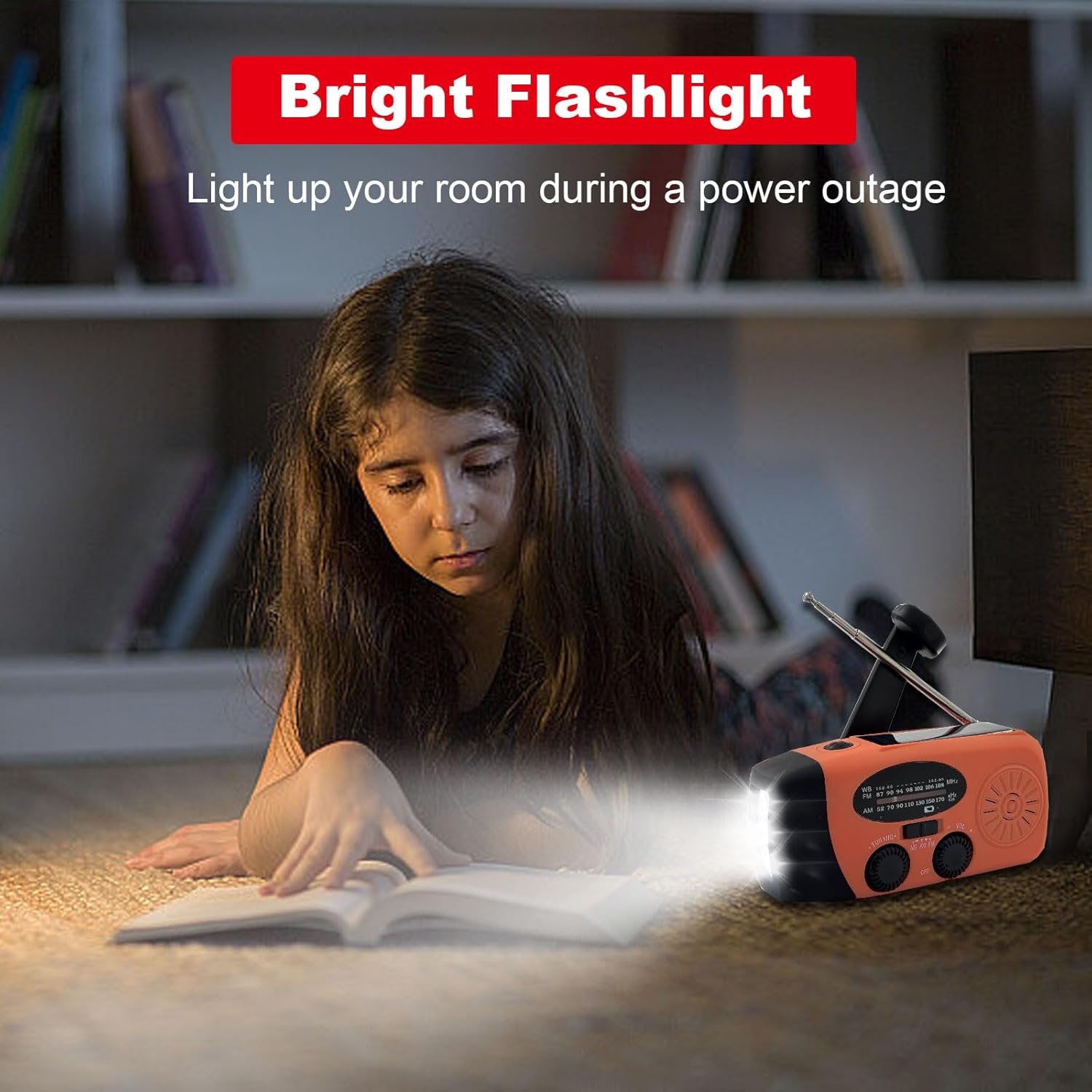 【4 MODE FLASHLIGHT 】 The Emergency Hand Crank Radio also provides 4 different modes of flashlight. This weather radio comes with a 1W flashlight & loud SOS alarm, which comes in handy in case of an emergency power outage to see any signals in the dark. It can be your savior in the event of dangerous disasters such as tornadoes and hurricanes.