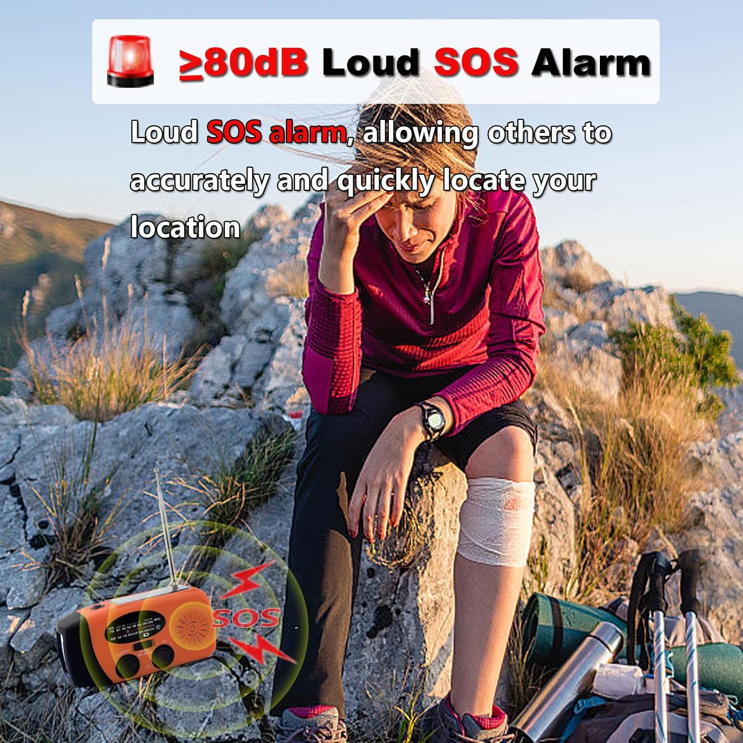 【3 POWER SUPPLIES TO GIVE YOU THE POWER YOU NEED】 When you need to replenish power or recharge your radio, use the emergency weather radio’s 3 power sources. Both the radio’s crank bar and solar panel regenerate enough power to keep the radio, lights and distress siren ready when you need them most.