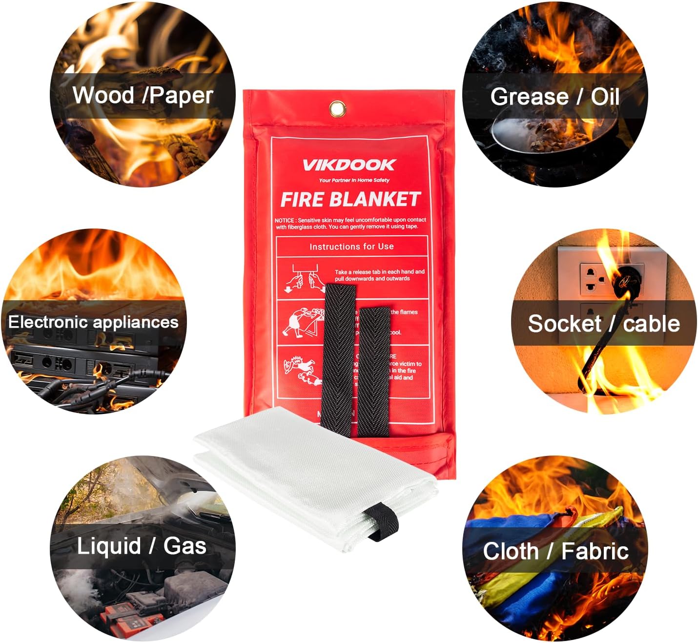 VIKDOOK Fire Blanket for Camping Grill Kitchen Emergency Fire Blanket for Home