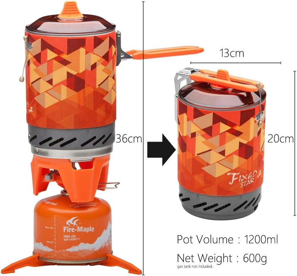 Designed to be used with any 230g butane/propane mix gas cannister (not included) It is made of lightweight anodized aluminum for durability and weighs only 600g . The gas cannister, burner unit and stand all store neatly inside the cooking pot and the handle folds on to the lid making a handy neat cooking system. The cooking pot comes with a heat proof, insulated neoprene jacket to keep the contents warm for longer and making it easier to handle.
