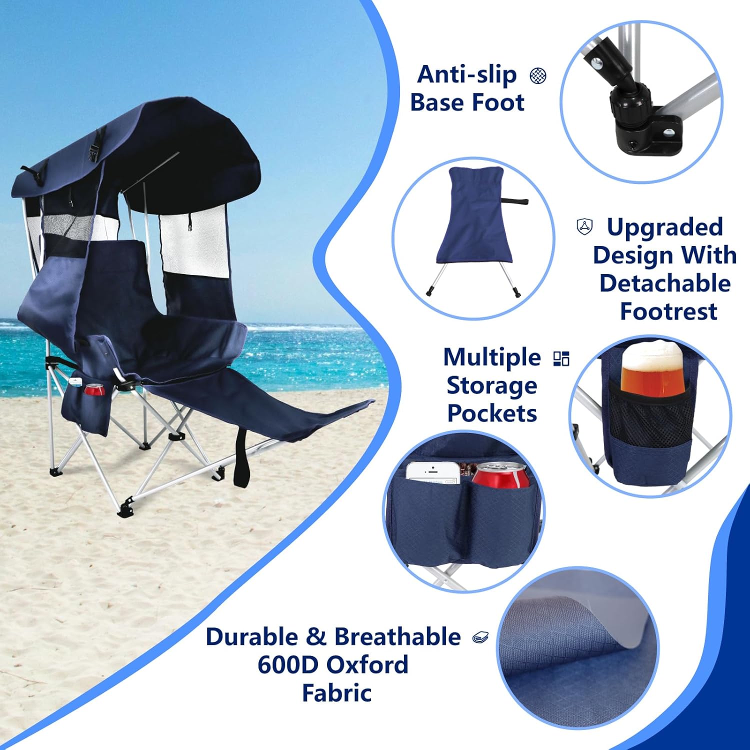 MAXIMUM SUN PROTECTION: Unlike traditional canopy chairs, this camping chair features additional side shades and a back flap, offering maximum sun protection by blocking sunlight from all angles and keeping you cool under the shade