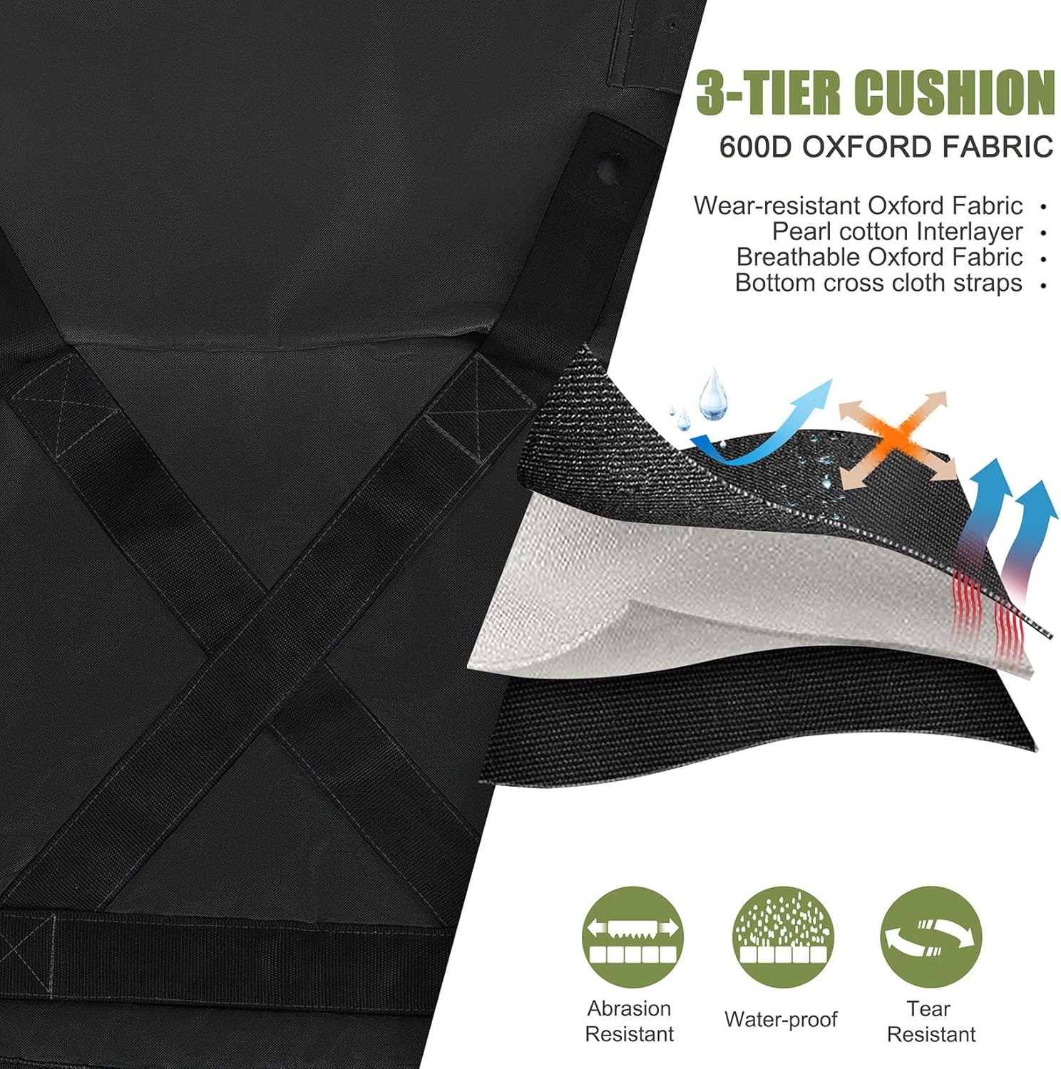 【3 LAYER CUSHION】 The 600D oxford fabric is highly resistant to wear and tear, And is also waterproof, Extra layer of cross-over bottom was sewn to ensures less sagging, Add pearl cotton inter-layer for comfortable feeling, Double stitching process makes the edge of the fabric connect tightly and doesn’t split, High quality material and excellent workmanship ensure a long service life