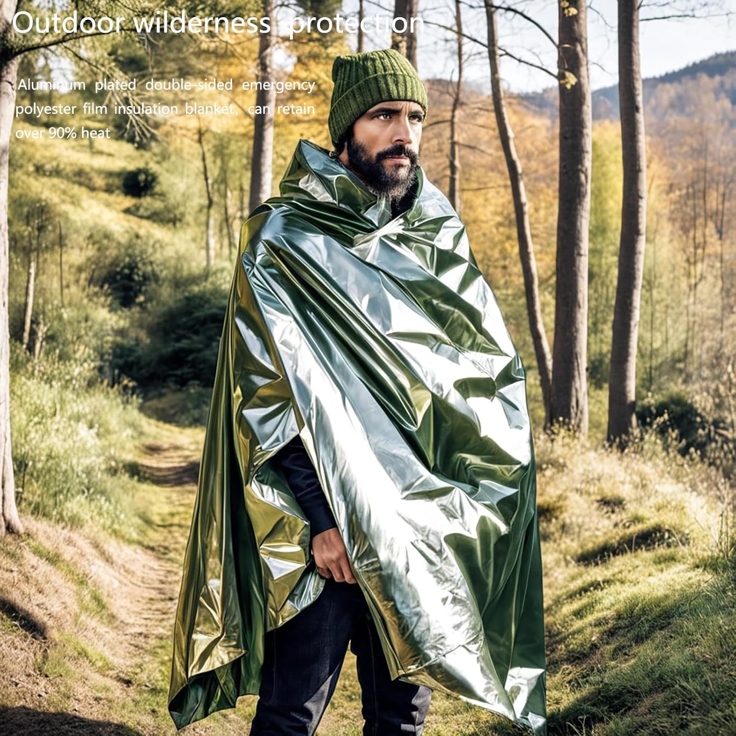 【 Multi functional 】 CHVAL polyester film space blankets are commonly used as insulation blankets, extreme cold rescue blankets, and emergency blankets. It has the following functions: wind deflector, rainproof layer, road signs, signal tools, emergency blanket, car emergency blanket, sleeping bag lining, tent lining, aluminum foil blanket, solar blanket, camping bag, emergency hemostasis, emergency shelter, fishing bait, etc. The camping emergency blankets can be used as a portable blanket for picnics and outdoor tools. It is tear resistant and its versatility makes it a valuable supplement to any outdoor enthusiast’s equipment.