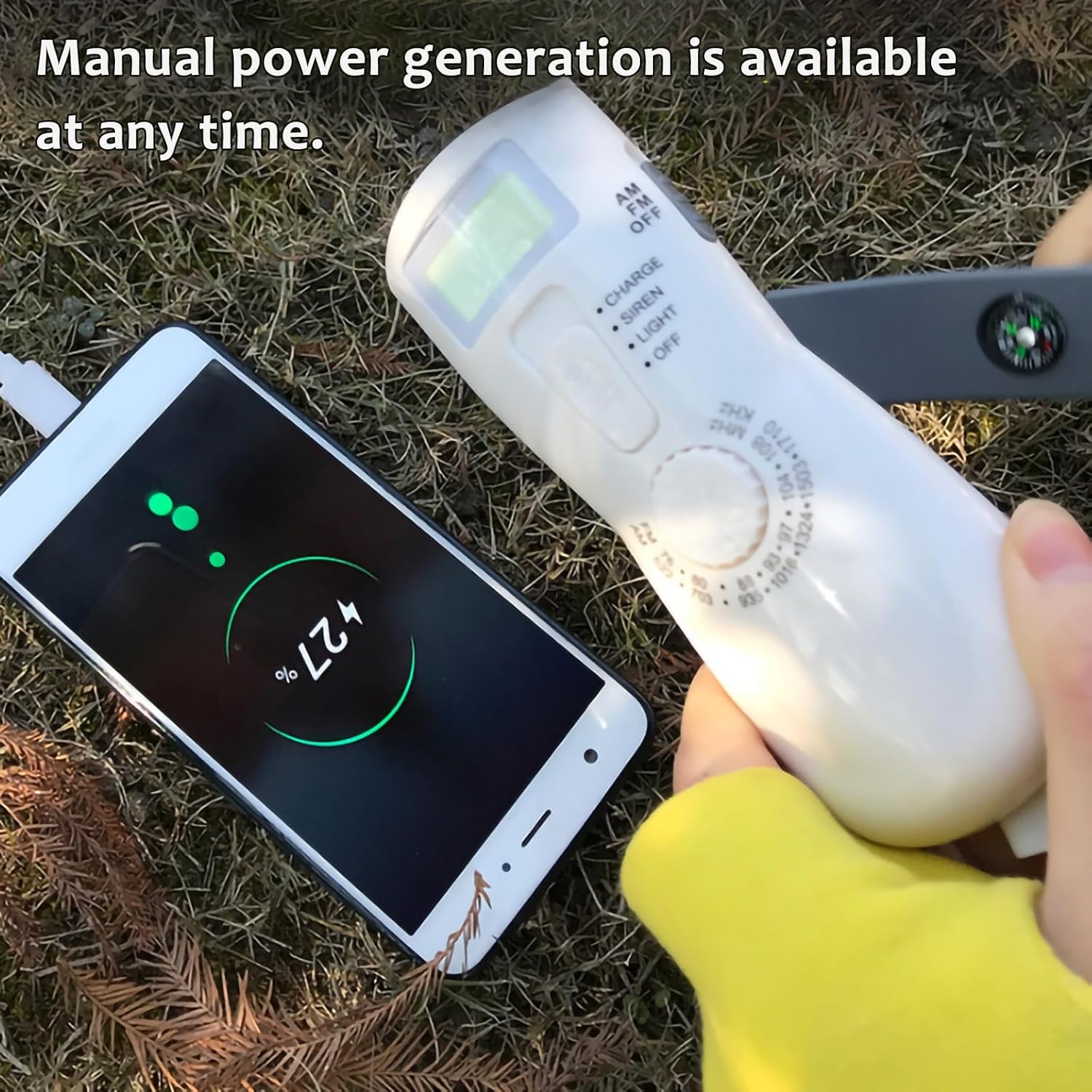 Emergency Ready Anywhere – Manual power generation lets you charge anytime, anywhere, perfect for camping, hiking, and survival situations