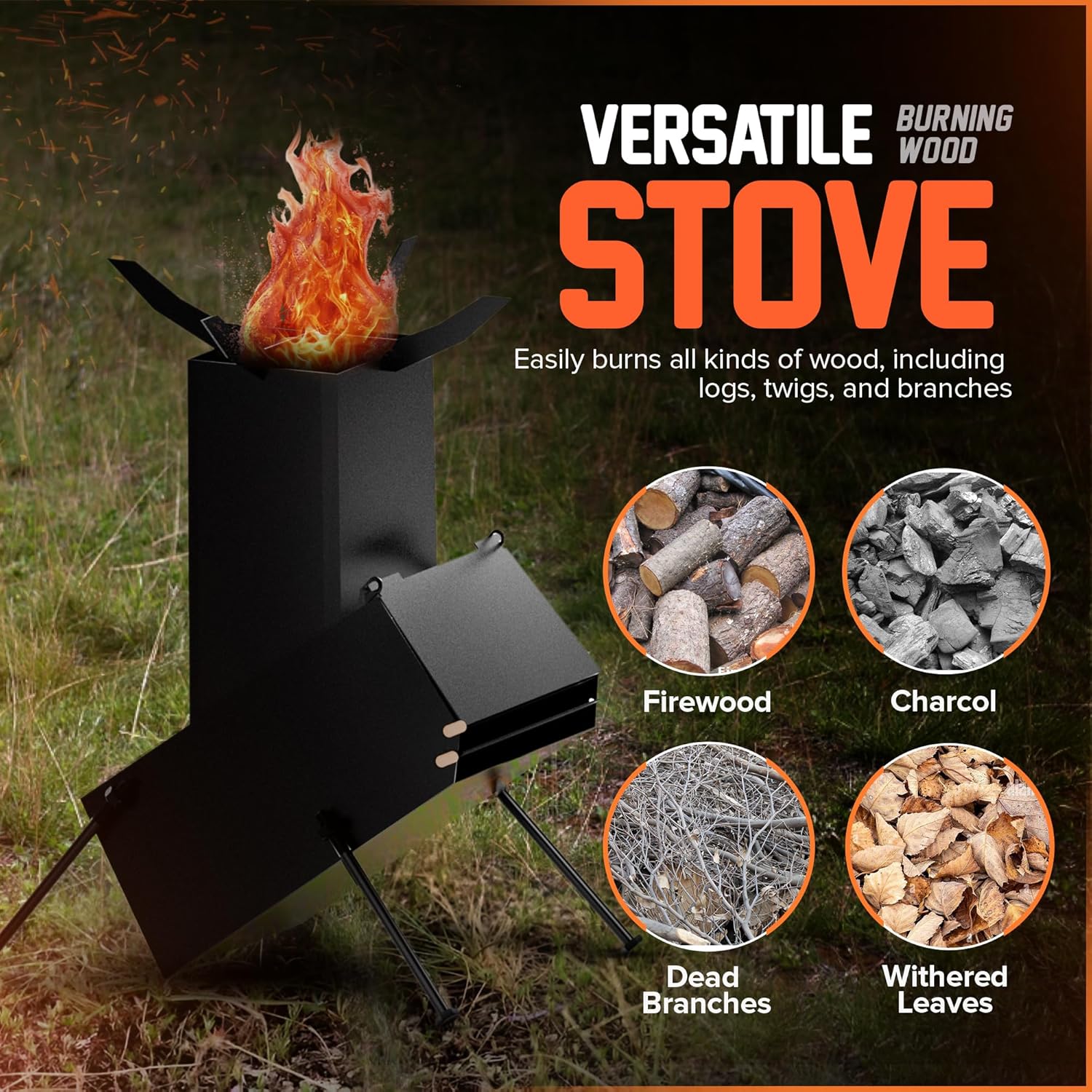 【Effortless and Quick】Forget the hassle of carrying propane, natural gas, or other fuels; this stove allows you to utilize readily available resources such as branches, pine cones, and leaves. Say goodbye to worries about fuel scarcity.