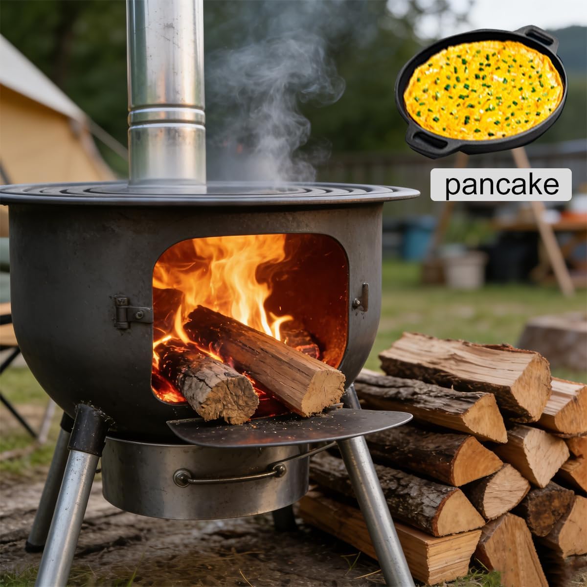 3-CORNER STAND DESIGN Portable outdoor cast iron wood stove can quickly remove the stand.Makes installation and removal without any difficulty1.8mm thick steel plate makes the camping stove more stable and safe