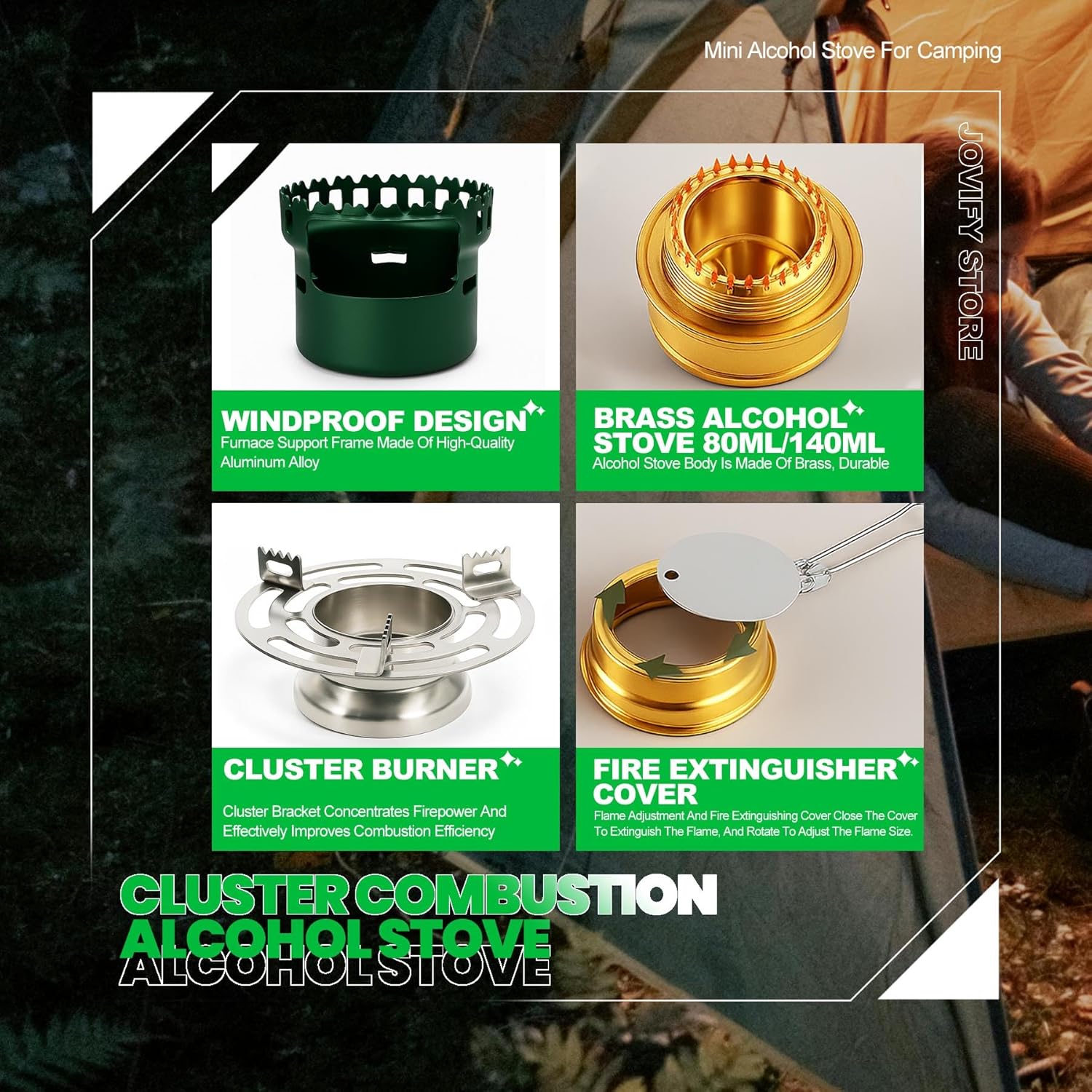 Windproof: Experience the ultimate in outdoor cooking with our 2-in-1 Windproof Alcohol Stove. The package includes two alcohol stove supports for varied needs – a windproof base for stability and a high-temperature stainless steel cluster burner for concentrated flames. Boil 500ml of water in just 6 minutes, accommodating larger cookware effortlessly.