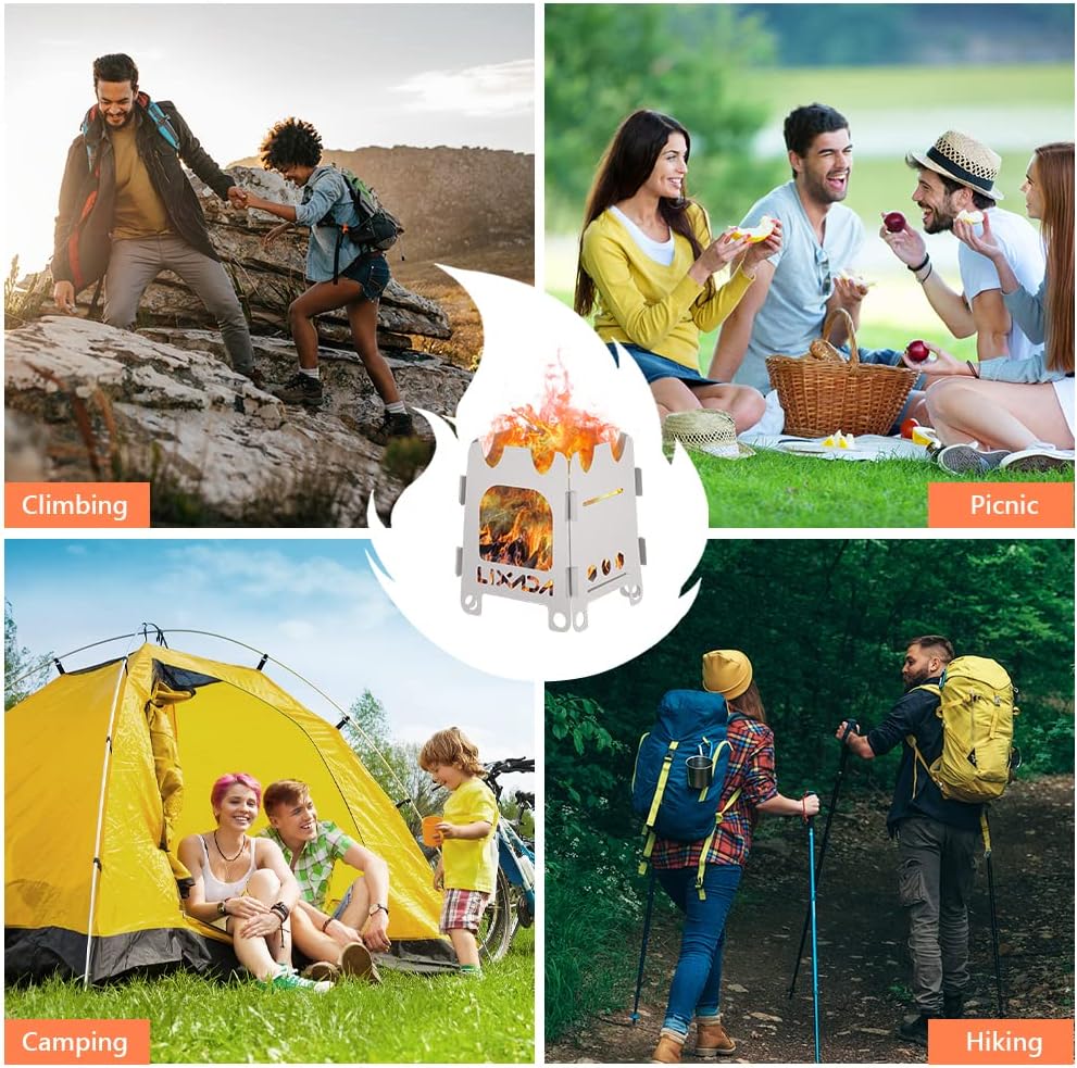 【VERSATILE USE】This amazing foldable camping stove is a must-have for the outdoors, Allows you to start grilling wherever you set up your camp. Perfect for camping, hiking, backpacking, picnics, barbecues, outdoor survival and adventures. Note: Wood stove only, items such as pots in the picture are not included.