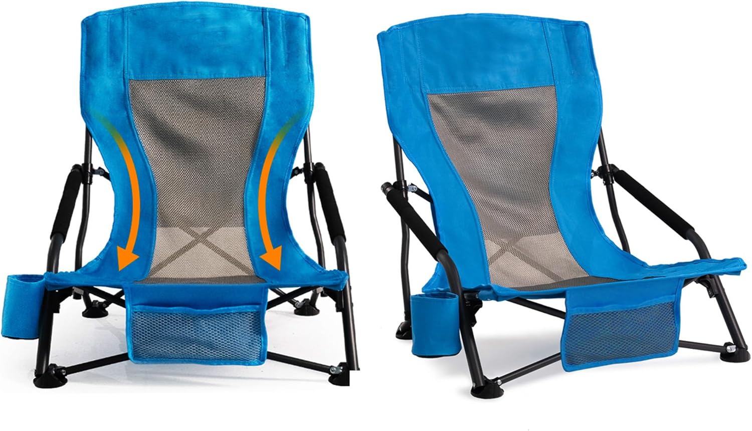 【Adjustable Low-Profile Seating】27.2″ low-height design allows natural leg extension while the water-resistant sand-proof fabric ensures comfort on beaches, riverbanks and uneven terrain
