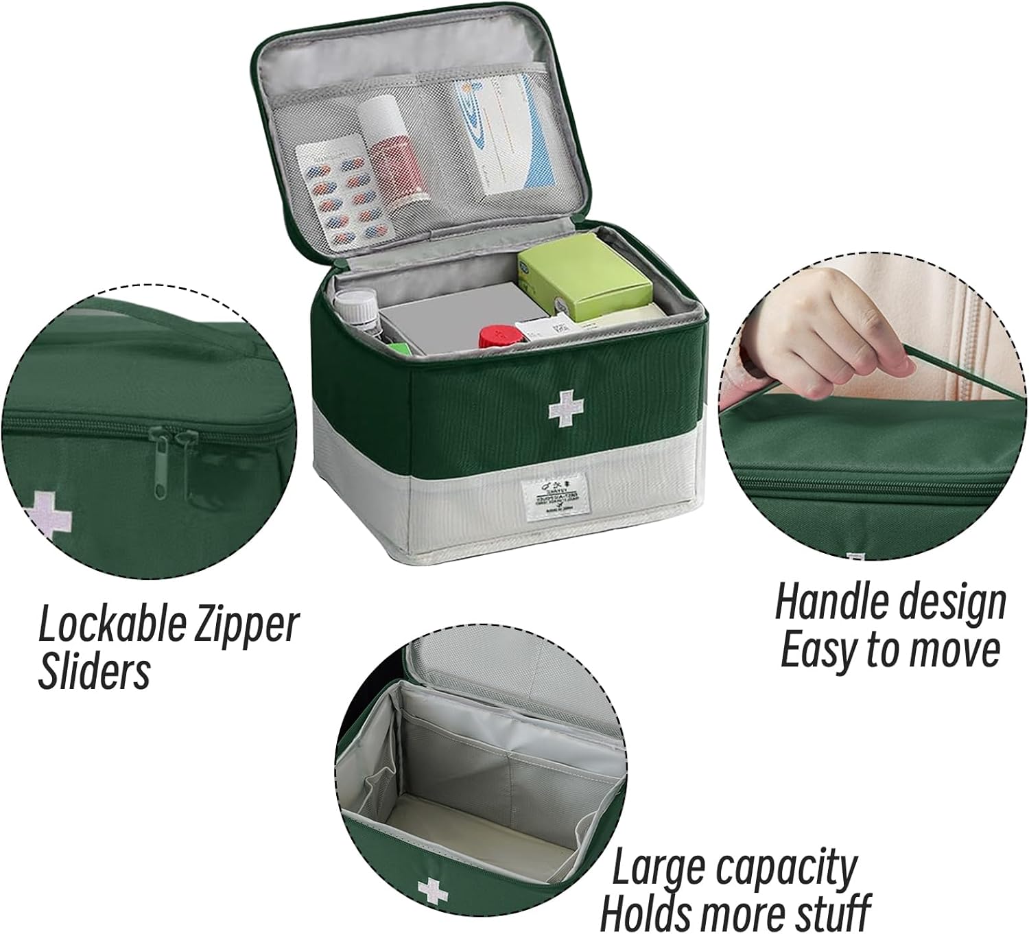 PORTABLE DESIGN: With a comfortable handle for easy carrying. Exquisite cross stitch, high recognition, easier to find, easy to hold all the medical necessities, and helps you to cope with different scenarios easily