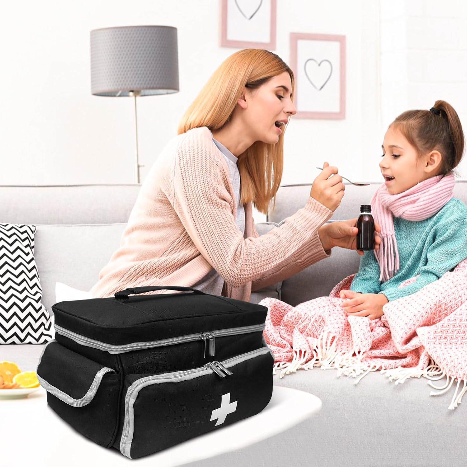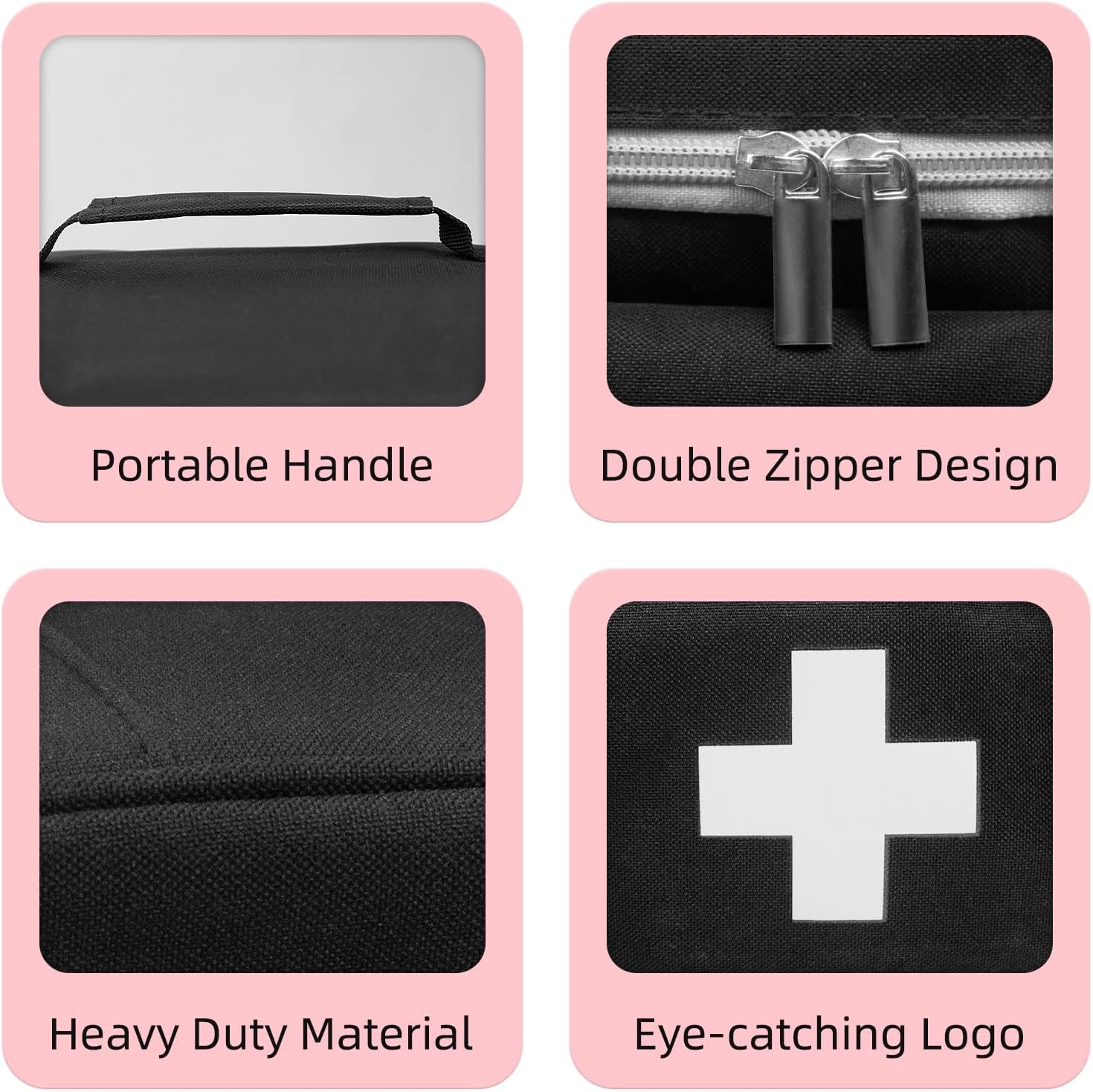 Portable & Easy to Use – The main compartment of the medicine storage bag is equipped with a silky and durable double slide zipper for quick access to medicines. The cross logo on the front is beautiful and eye-catching, the side pockets are fastened with Velcro, and the top handle is convenient for carrying and convenient travel.