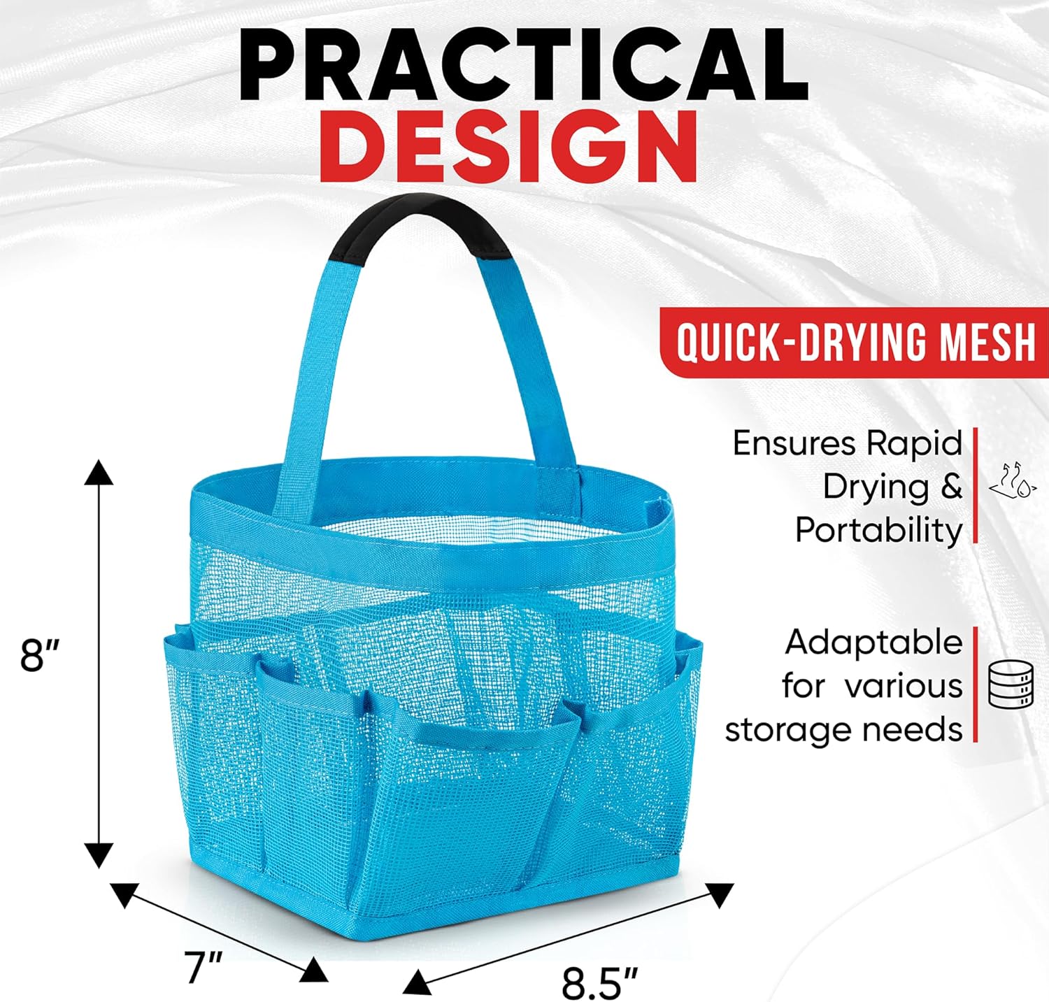 SMART ORGANIZATION: Features a spacious main compartment surrounded by 8 side pockets, making this shower caddy mesh tote perfect for holding shampoo, conditioner, soap, razors, and skincare essentials