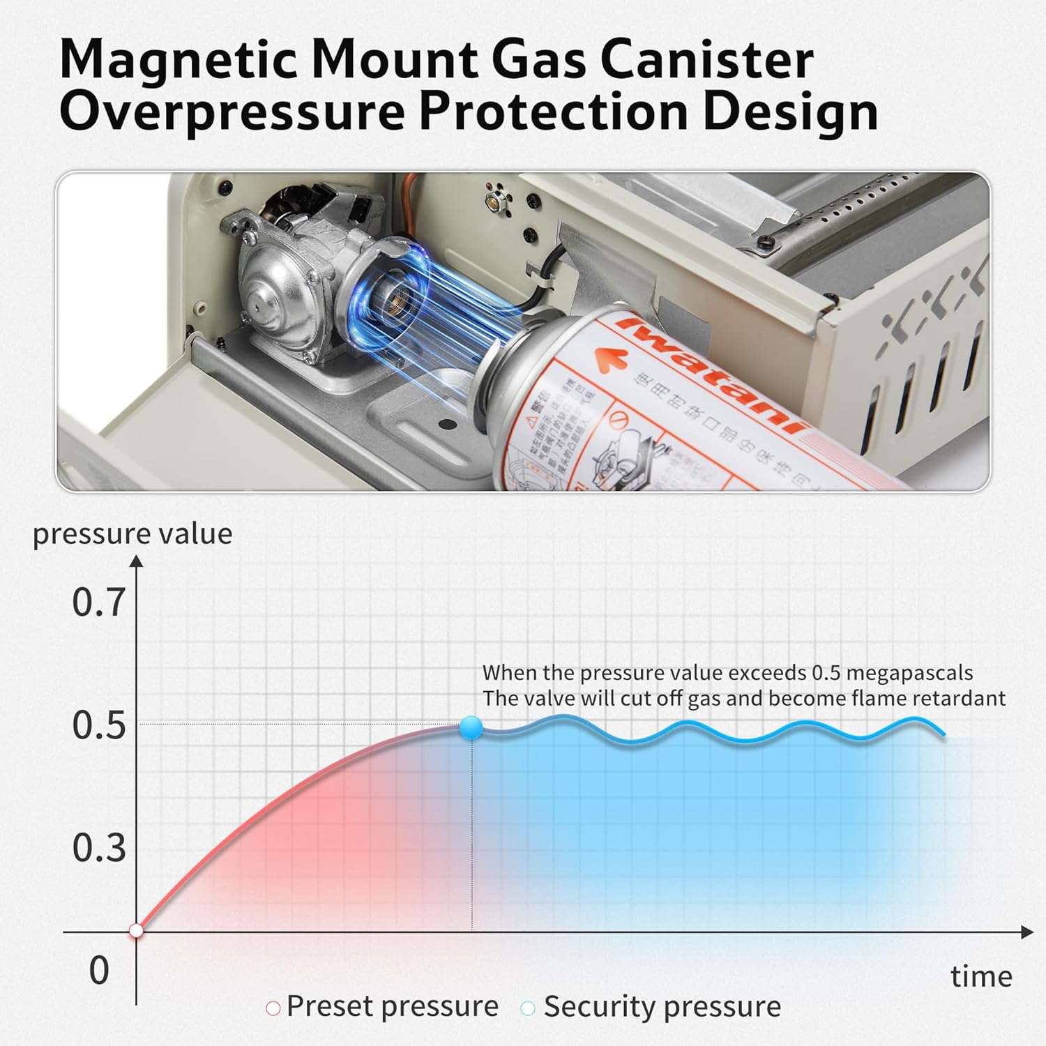 Comprehensive Safety Protection: With a power rating of 2.2kW (1900kcal/h) and built-in intelligent overpressure protection, the valve automatically shuts off the gas supply when internal pressure exceeds the safety threshold (0.5MPa). Flame-retardant and explosion-proof, it safeguards your outdoor cooking adventures