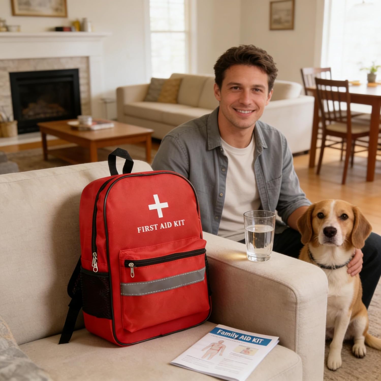 Durable Materials: Crafted from high-density Oxford fabric, this first aid kit backpack offers superior tear-resistance and water-repellent protection. It reliably safeguards your emergency medical supplies and pet first aid kits from moisture, dust, and rough handling during outdoor adventures