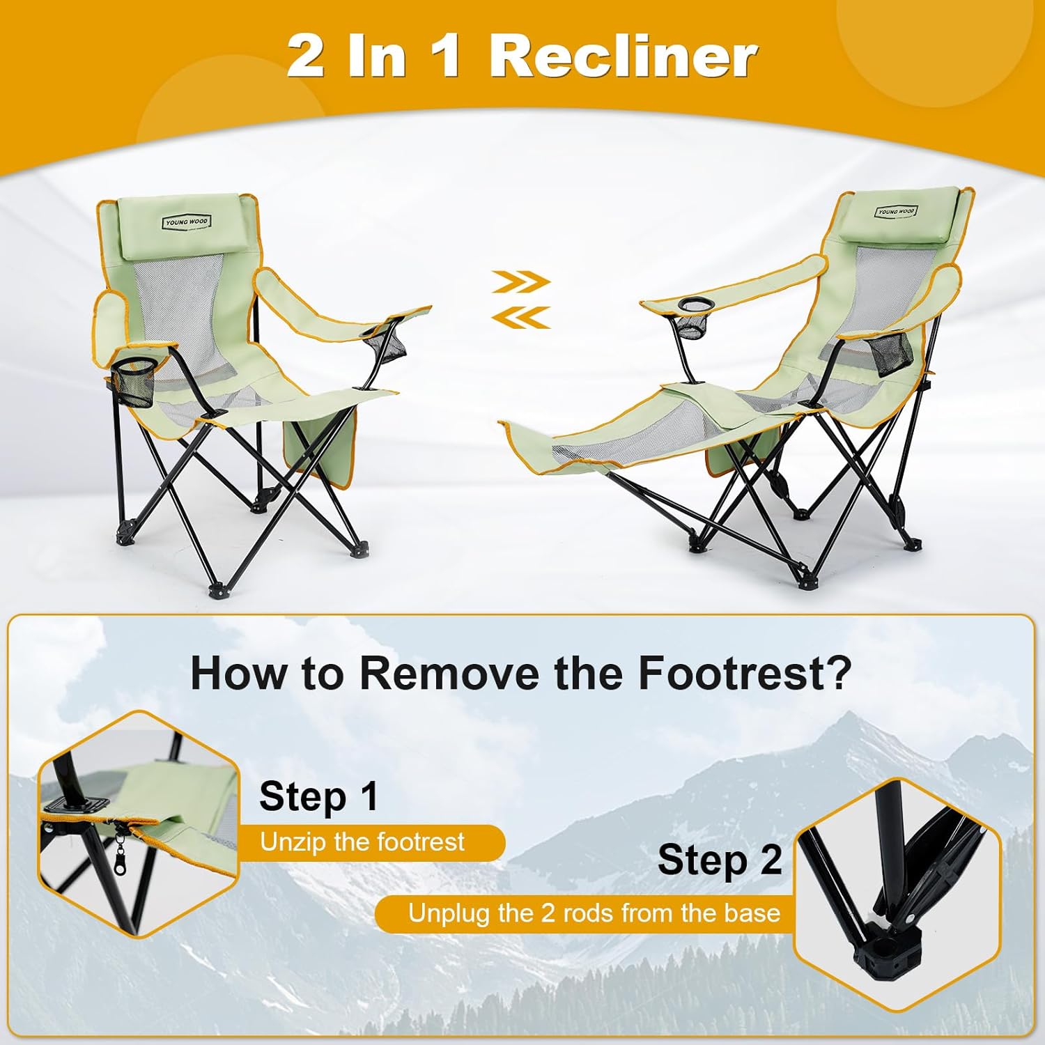 🥾 YOUNG WOOD Camping Lounge Chair, Portable Reclining Camping Chair with Foot Rest, Folding Camping Chair for Adults, Headrest & Storage Bag, Mesh Recliner with Backpack, 330lbs Weight Capacity,Green — Review, Key Features & Current Price
