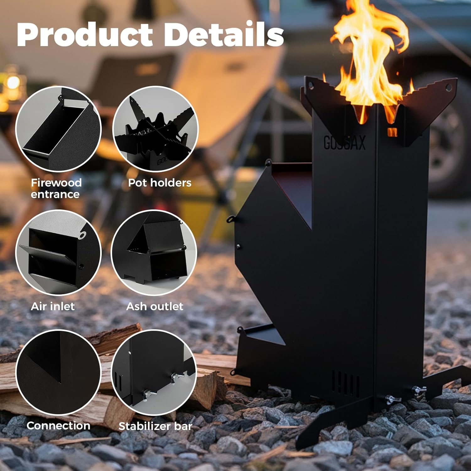 Ease of Use: Using this wood-burning stove is a breeze—just attach the pot holder on top and the anti-tip bar at the bottom, and you’re ready to go. Plus, its tilted combustion chamber lets wood ashes slide out automatically after burning, so you can easily add more wood without messy cleanup