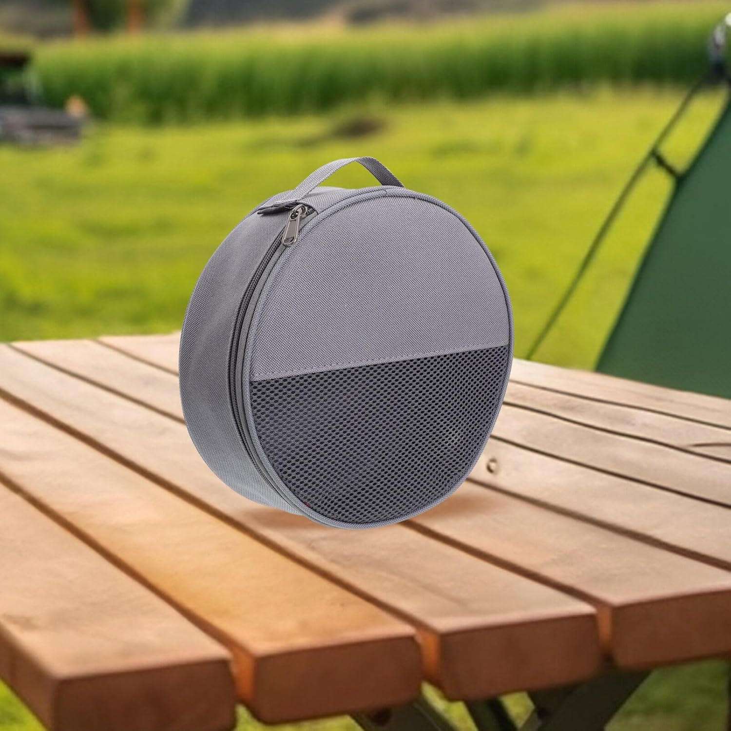 Core Functionality: This outdoor tableware bag features a spacious 8.66 x 8.66 x 2.36 inch round mesh design that organizes camping plates, bowls, and utensils efficiently while allowing air circulation to prevent moisture buildup and keep your camping cookware carrying case fresh
