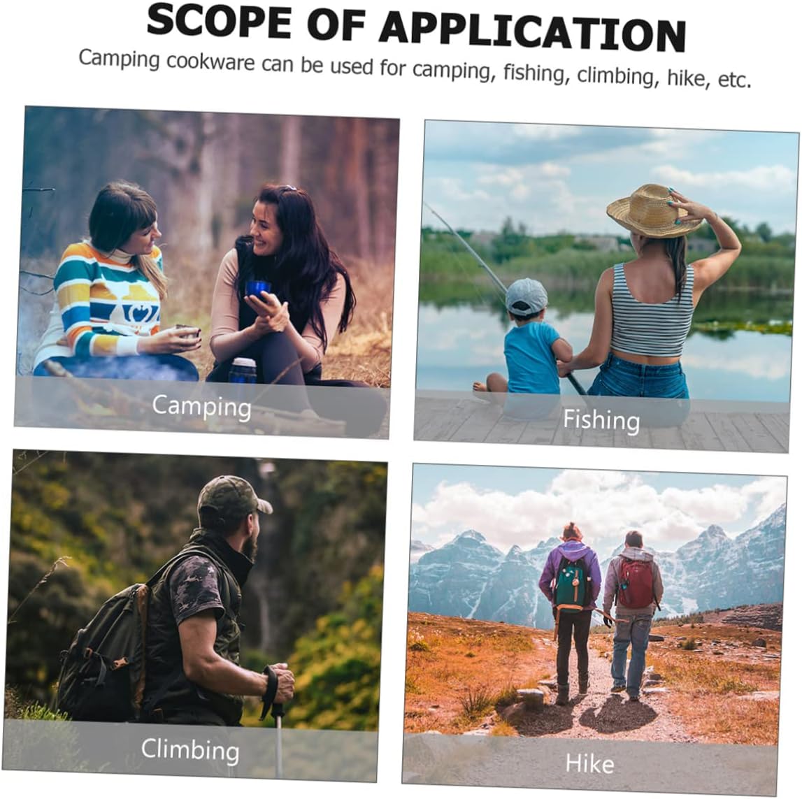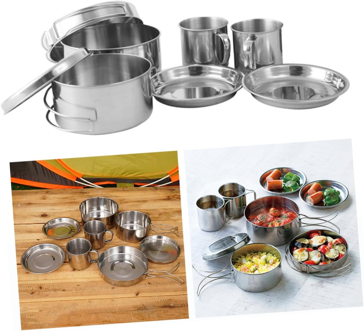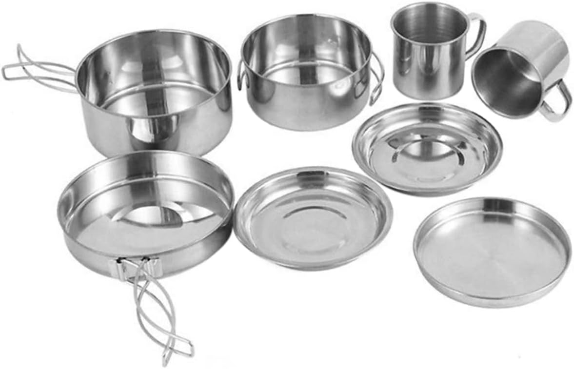 -These portable stainless steel cookware kit is perfect for outdoor camping, hiking, fishing, and so on camping equipment.