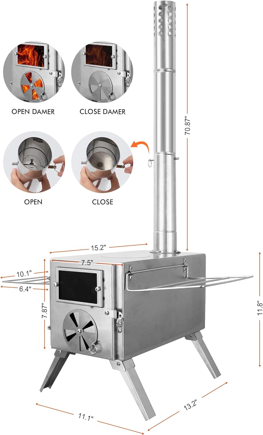 Versatile Application: Suggestion, Please read the installation instructions, it is best to burn once before using a wood stove. During winter camping, backpacking, ice fishing, and hunting trips, you no longer need to endure the cold nights in the tent. Meet the needs of avid outdoor enthusiasts for adventure, car travel, and shelters.