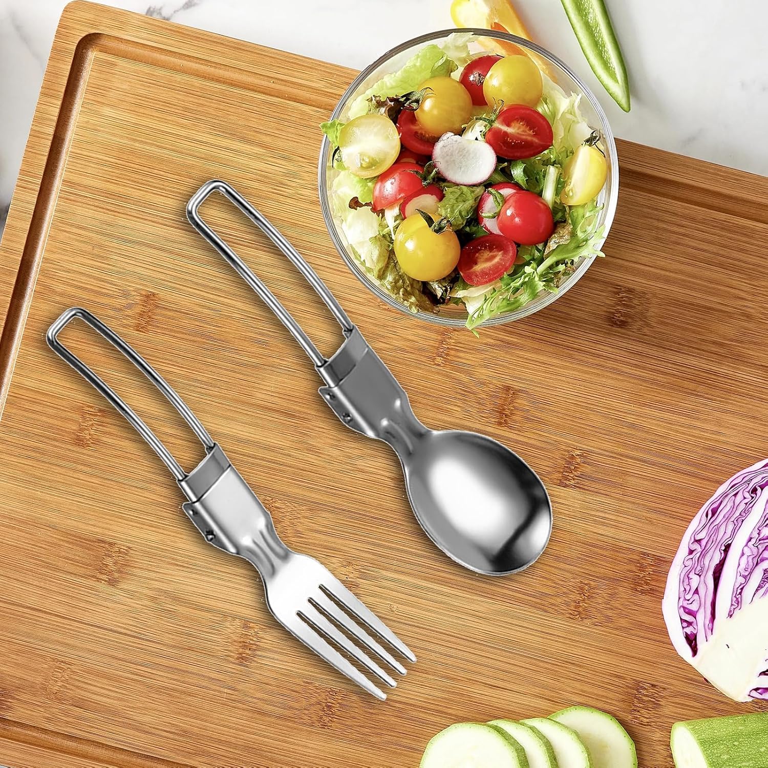 User-Friendly Locking Mechanism: Designed for ease of use, the utensils include a sliding lock feature. Simply slide the lock to the top to fold and secure the sporks stainless steel during transportation, ensuring they stay locked and sturdy when in use