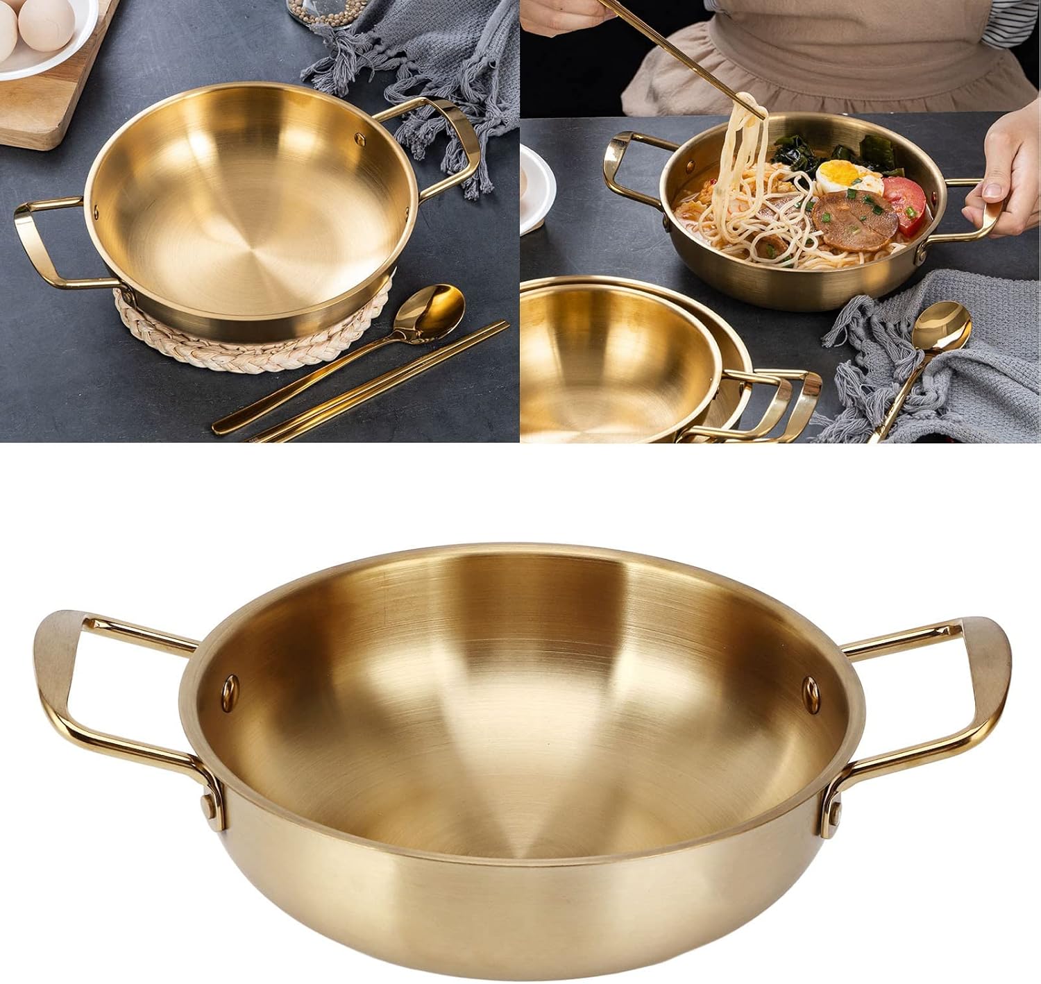 Stainless Steel Noodle Pot Korean Gold Ramen Cooking Pot Portable Kitchen Cookware for Household for Pasta Ramen (Inner diameter 18cm)