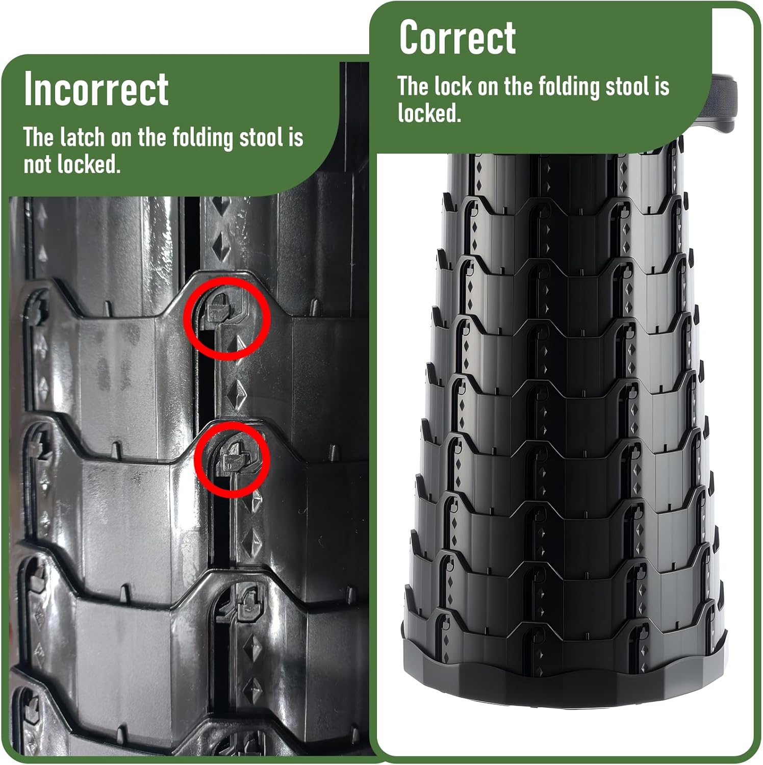【MORE COMFORTABLE】This newly upgraded portable collapsible stool is made of high-density thickened PP material, which is hard, stable, scratch-resistant and wear-resistant. Upgraded fish scale structure and reinforced 10-layer buckle design, increase collapsible stool strength, rigidity and stability. The bottom of the portable stool has a non-slip design, and the side support and anti-tilt ability have also been strengthened, making the stool more durable and safe.