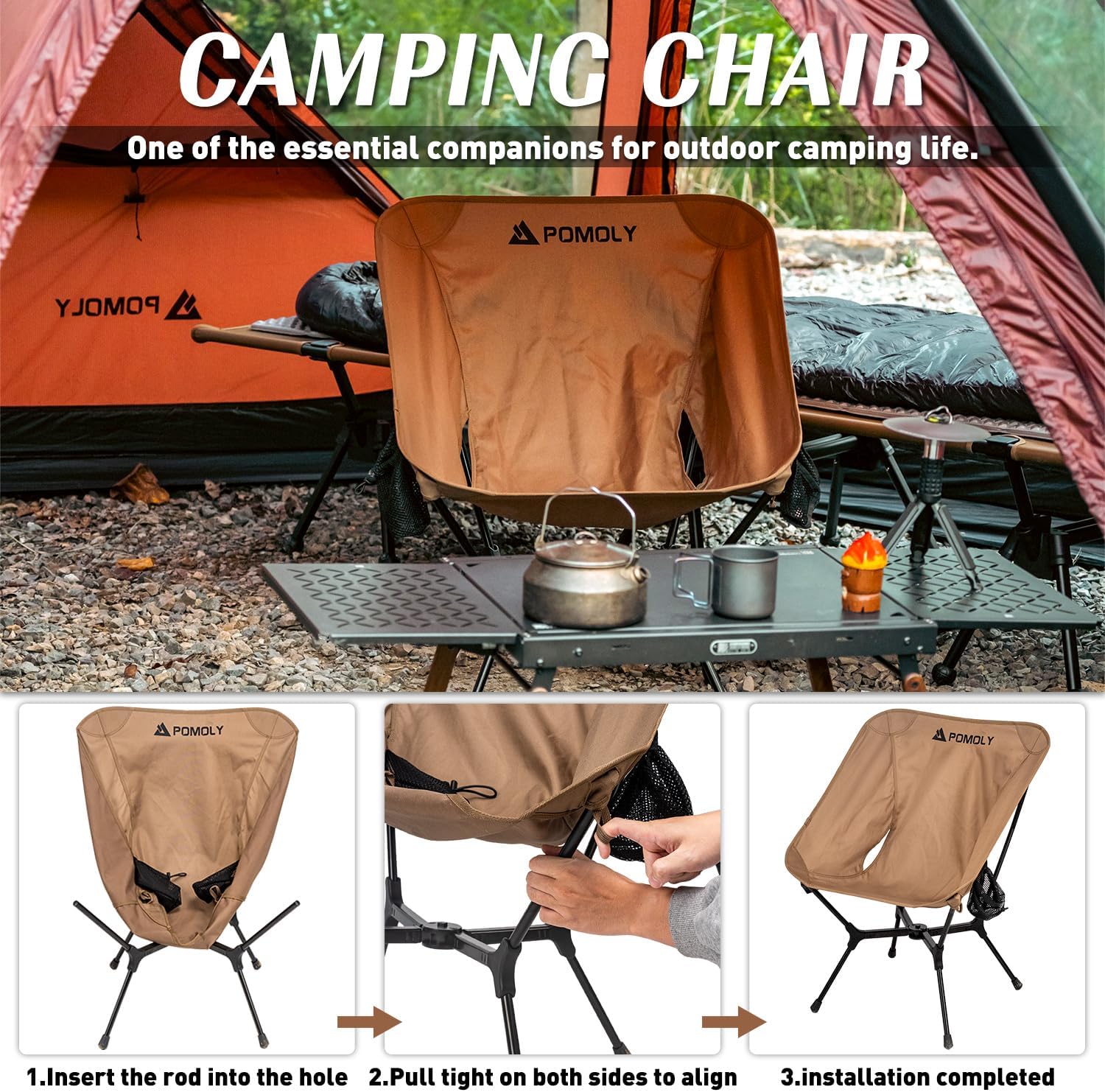POMOLY Ultralight Camping Chair Folding Backpacking Chair, MOK Compact Portable Lightweight Folding Hiking Chair with Side Mesh Pockets
