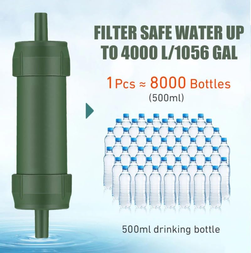 Compact and Lightweight: The water filter straw is small and lightweight, making it highly portable and easy to carry in your backpack, emergency kit, or even your pocket.about 4000L(1,000gallons) Capacity guaranteed standards Food grade standard.