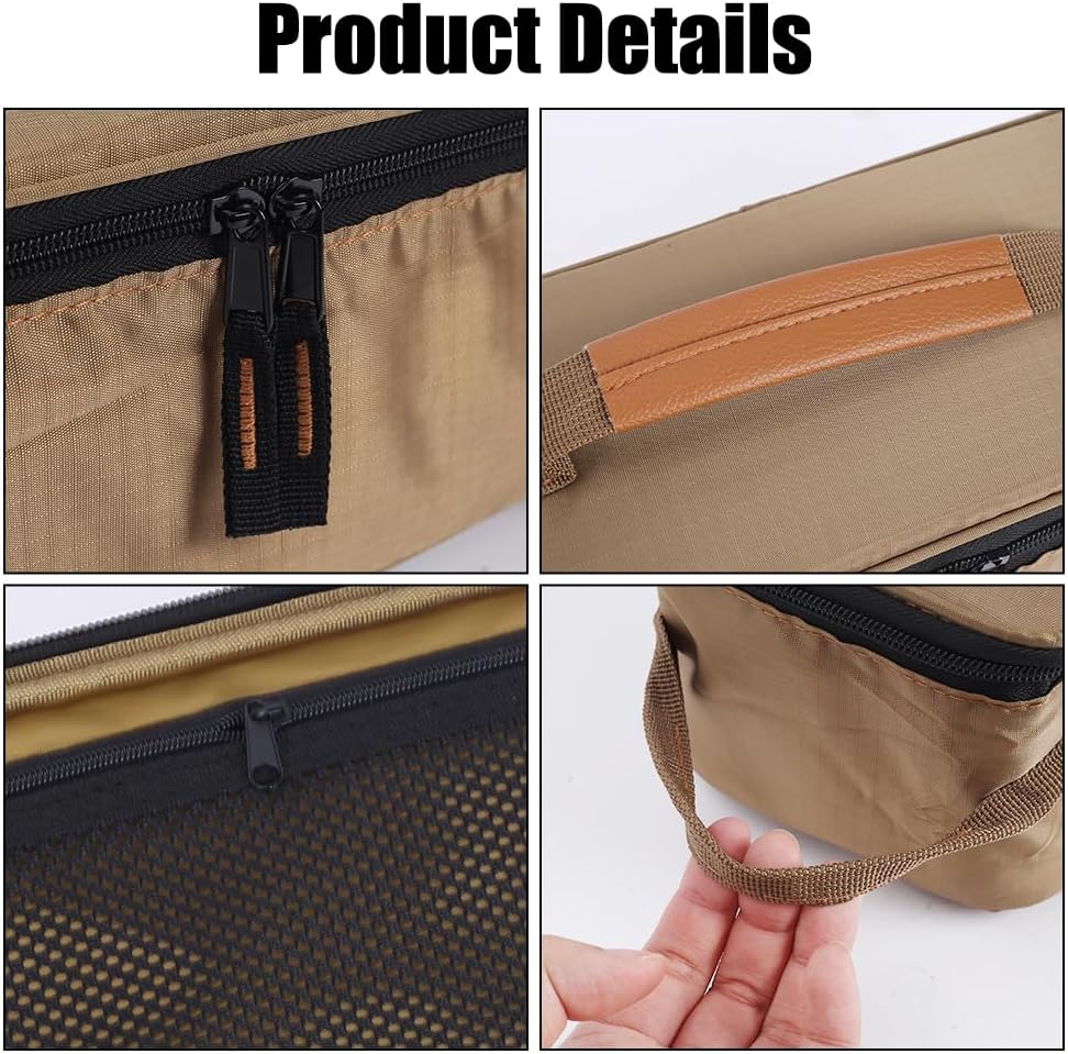 High Capacity: The cookware storage bag is 31*13*12cm, which can organize almost all kitchen tools you need outdoor. Built in zipper mesh pocket for clearer classified storage. Keep all your outdoor kitchen essentials in a kit to make car camping easier.