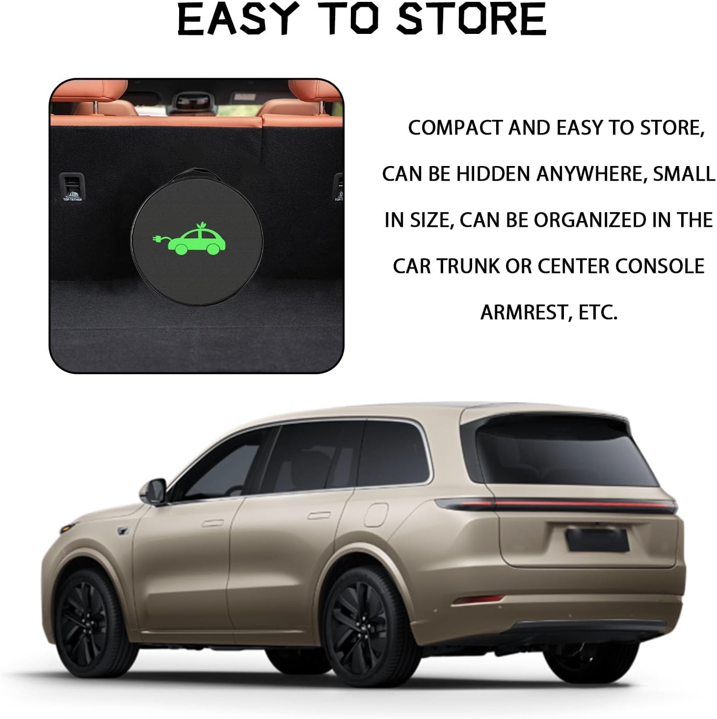 Multi-Functional: The EV cable organizer is not only suitable for electric vehicle charging cables, but can also store jumper cables, flexible hoses, various cables, and other small car tools. Meeting multiple needs, it is an ideal choice for in-car organization and travel storage