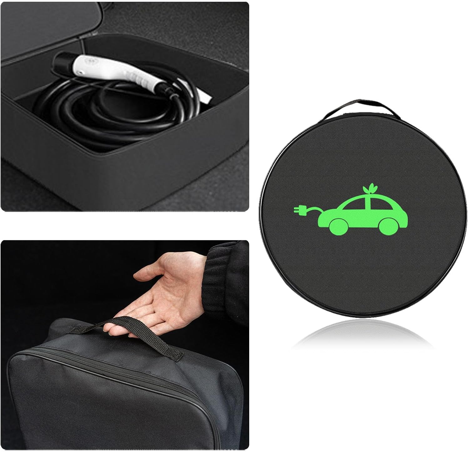 Durable Materials: The EV charging cable organizer is made of high-quality tear-resistant Oxford cloth with reinforced stitching, making it stain-resistant, wear-resistant, and impact-resistant. It maintains its good appearance and lifespan for a long time, providing you with reliable storage protection. The durable and sturdy handle reduces the burden when carrying items