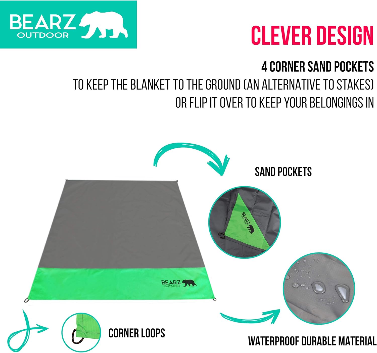 ✔ Why BEARZ Outdoor – We care about our products, and most of all, we care about our customers. Every little detail has been thought out to make these waterproof, lightweight, and durable outdoor blankets from their vibrant colors and intricate stitching to the hidden corner pockets and other unique added accessories. If you ever have any questions at all, contact us and we promise to take good care of you!