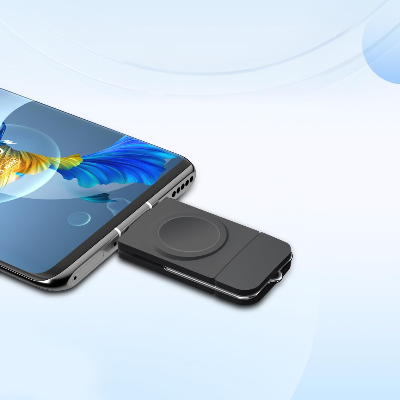 【Innovative designed & USB A/C Cordless Charger】:Built-in USB-A & Type-C plug.No additional cable needed.Cordless charger supports adapter,computer,tablet and mobile phone with OTG function input.Strong magnetic attraction.When your iwatch close by.The magnetic charger automatic alignment and charge immediately.