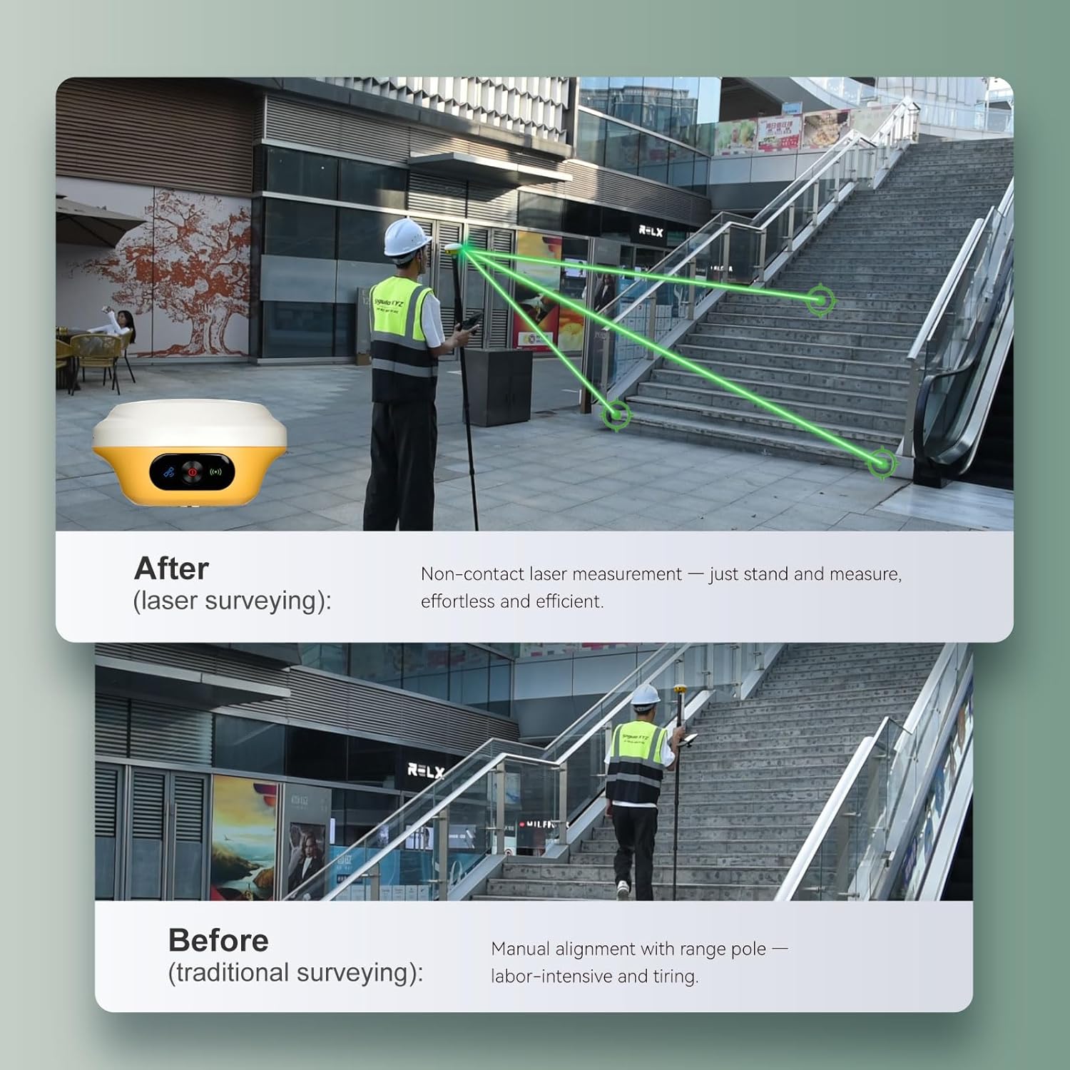 【Centimeter RTK Performance】 Full-Frequency L1-Laser/Z1 GNSS RTK support with 1408-channel L1/L2 GNSS engine delivers 5-second initialization and centimeter accuracy under trees and urban canyons, supporting GPS/GLONASS/Galileo/BDS/QZSS/SBAS.