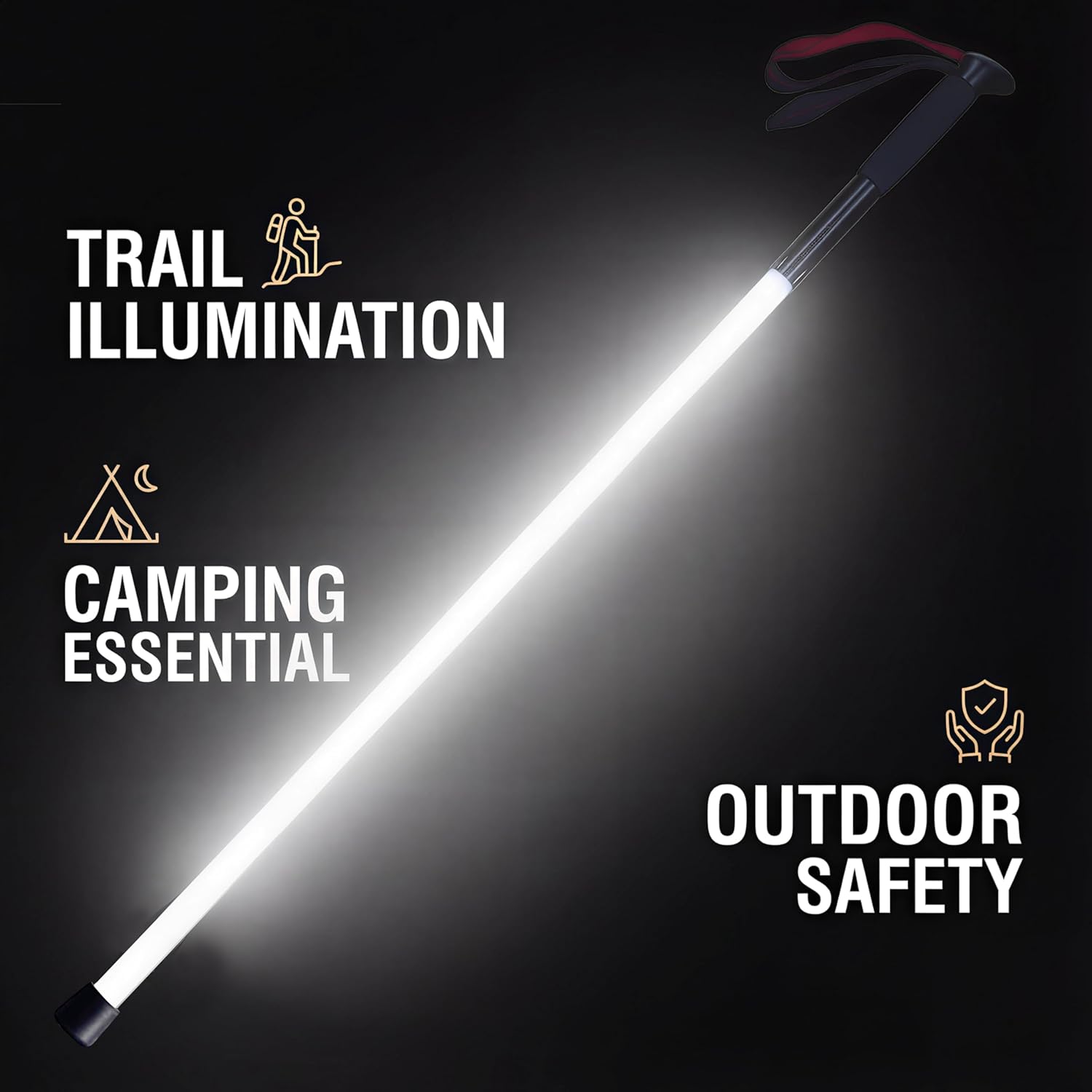 DUAL FUNCTIONALITY: Innovative hiking pole combines a sturdy walking stick with bright LED lighting strips for enhanced visibility during night hikes