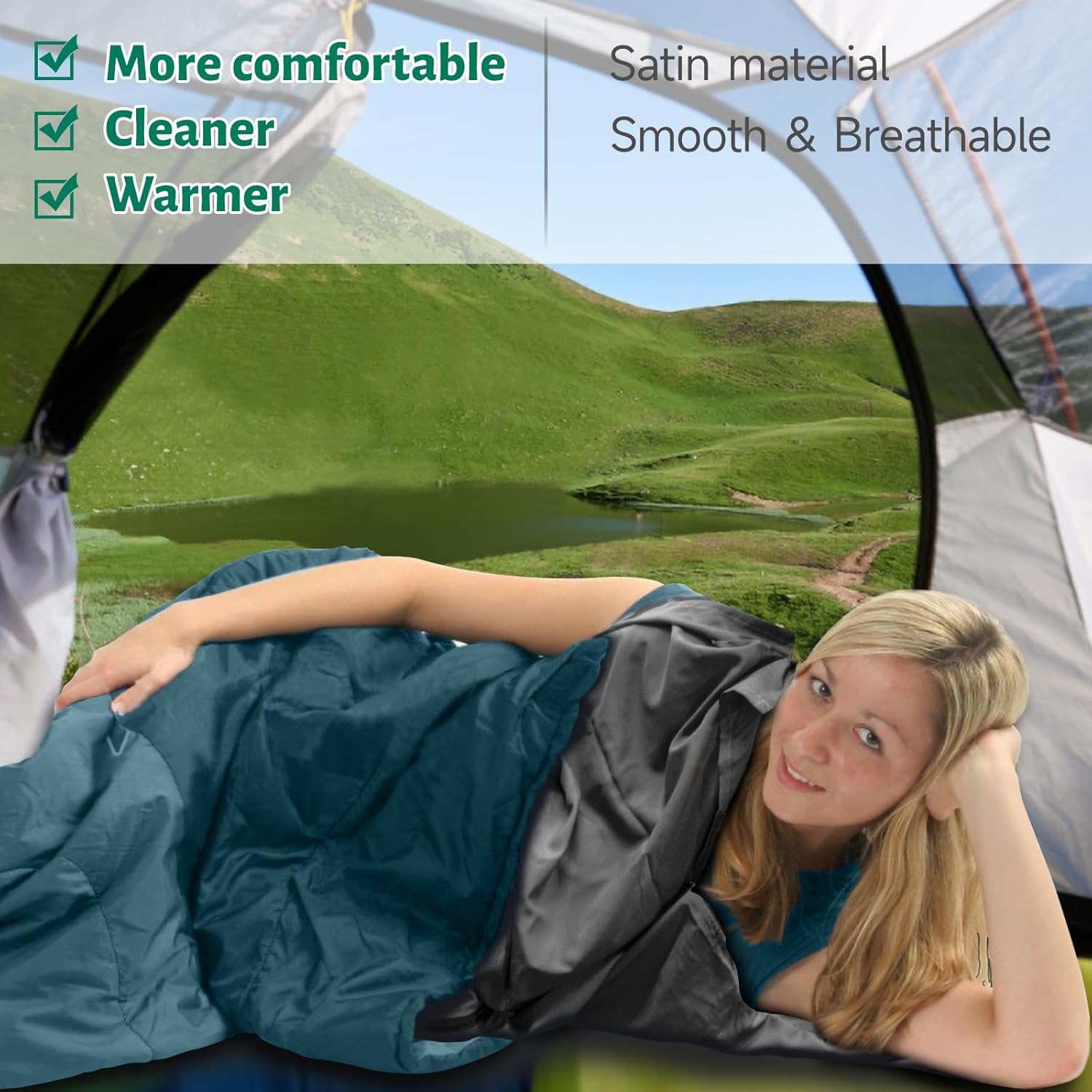 Lighter and Compact: Sleeping Bag Liner/Travel Sheet is made of ultralight and thin smooth satin material with exceptional softness, offering comfort like cotton but with 45% less weight (only 7.8oz). It is a perfect inner liner used inside sleeping bags. It not only protects your sleeping bag from getting dirty, but also provides you with extra comfort.